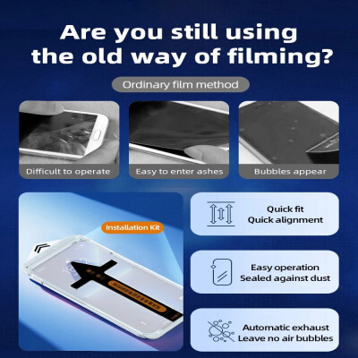 【 إزالة الغبار التلقائي والتركيب البسيط】 أسهل وأحدث صندوق تثبيت الغبار ، لم يعد لديك ما يدعو للقلق حول فقاعات والضباب الذي حدث سابقا بسبب أداة التثبيت العادية. مجرد غطاء وسحب سحب الشريط ، سيتم امتزاز الغبار تلقائيا ، ثم سيتم محاذاة حامي الشاشة آيفون تلقائيا ودقة ، وذلك لتحقيق فيلم خالٍ من الغبار وحل مشكلة التصوير الصعبة تماماً. من السهل جدا على أي شخص!