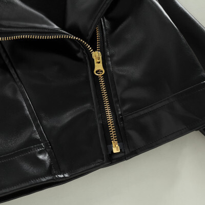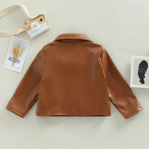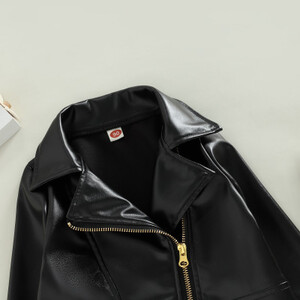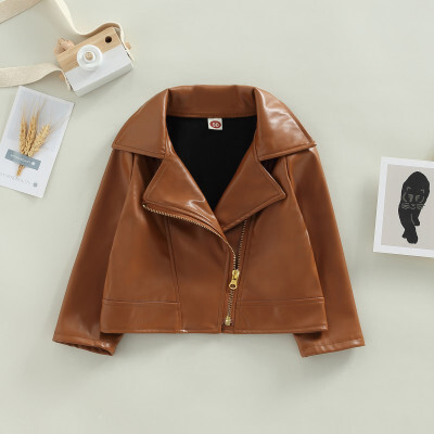 أطفال بولي PU سترة جلدية ، طويلة الأكمام بدوره إلى أسفل طوق سستة إغلاق أبلى عادية للفتيات الفتيان