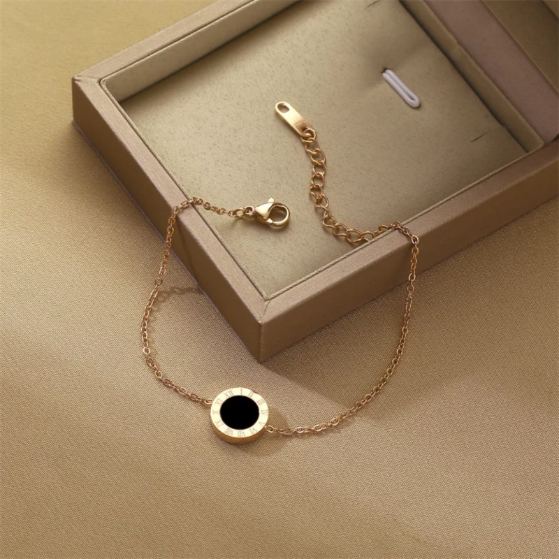 اساور نسائية كلاسيكية روماني باللونين الابيض والاسود كلا الجهتين مصنوعة من الفولاذ المقاوم للصدأ بتصميم روماني فاخر واكسسوارات عصرية على شكل صدفة وقلادة