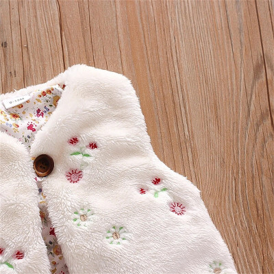 الخريف والشتاء الفتيات الفراء سترة الحلو زهرة التطريز أكمام الدافئة معطف الموضة 0-3 سنة سيدة ارتداء أعلى
