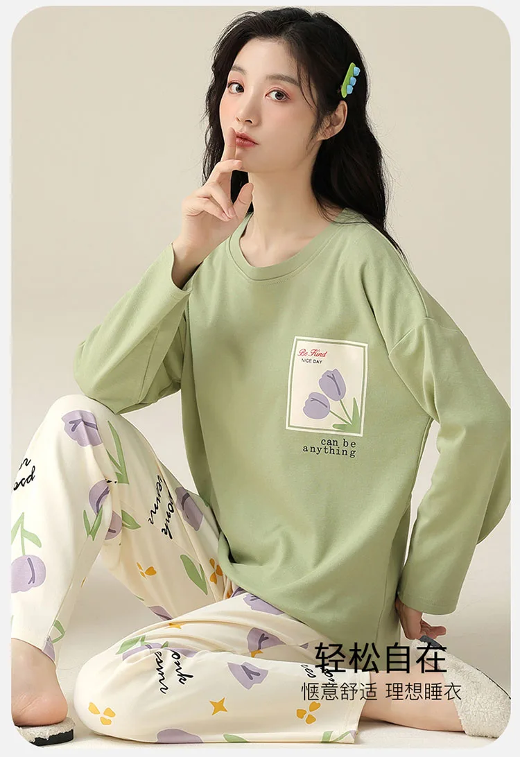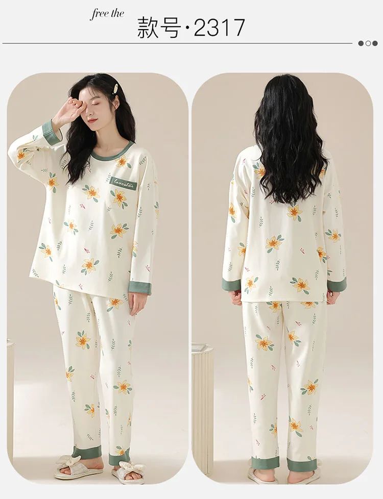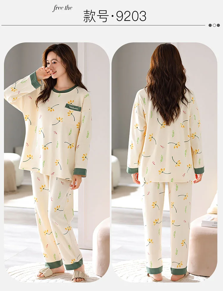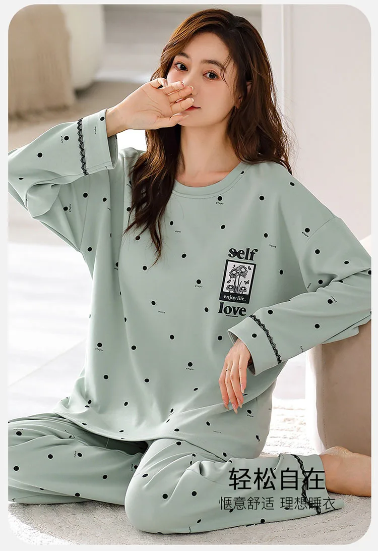 كن أول من يقيم “الخريف 100 القطن النساء منامة طويلة الأكمام المرأة بيجامة مجموعة طباعة M-5XL بيجامة بلوزات طويلة + السراويل الطويلة قطعتين مجموعة منامة”