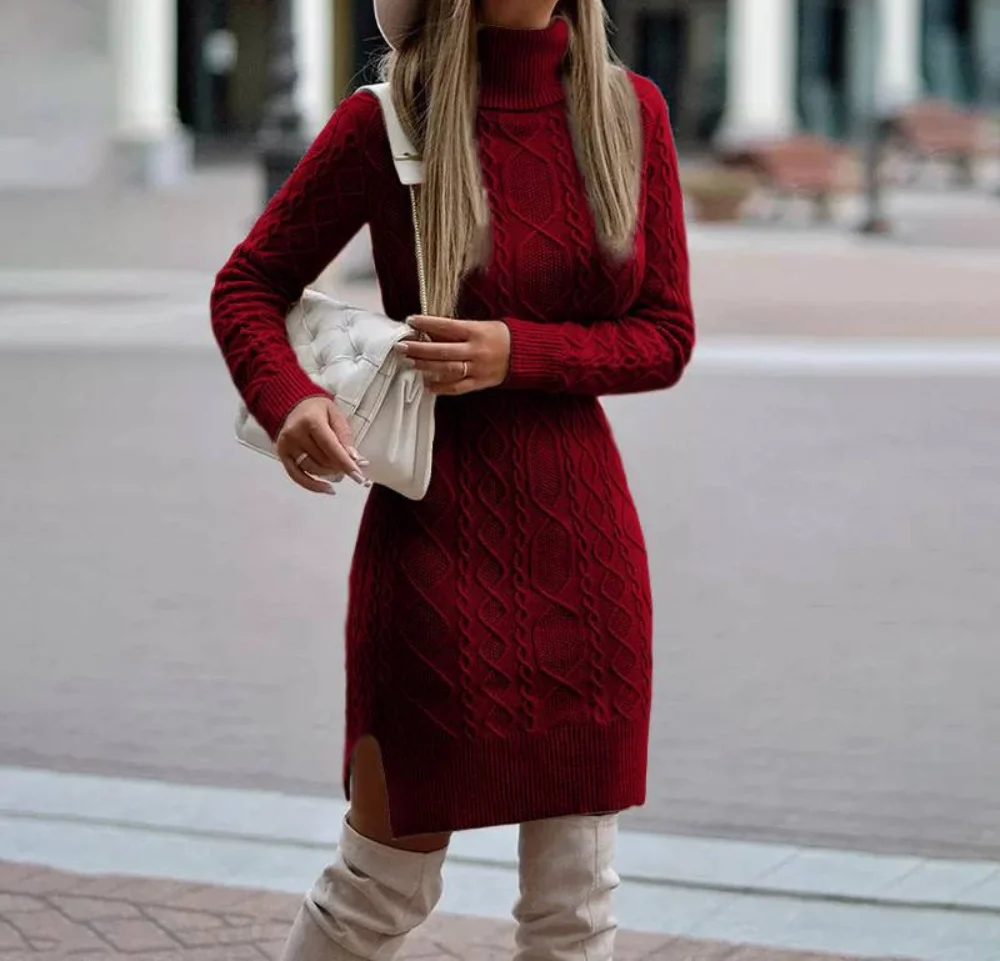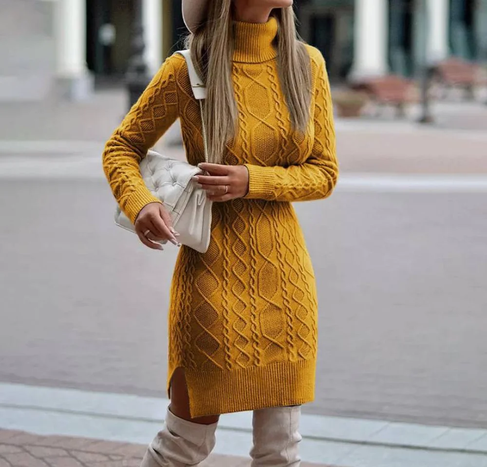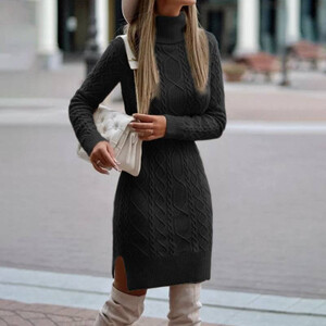 الياقة المدورة كابل ضئيلة متماسكة سترة النساء فساتين 2023 الخريف موضة عادية كم طويل فستان قصير الإناث جديد السيدات الملابس