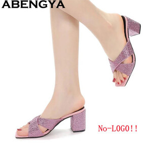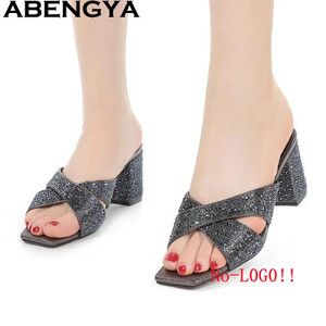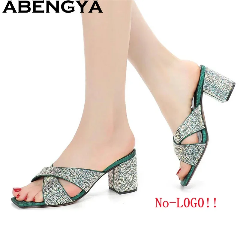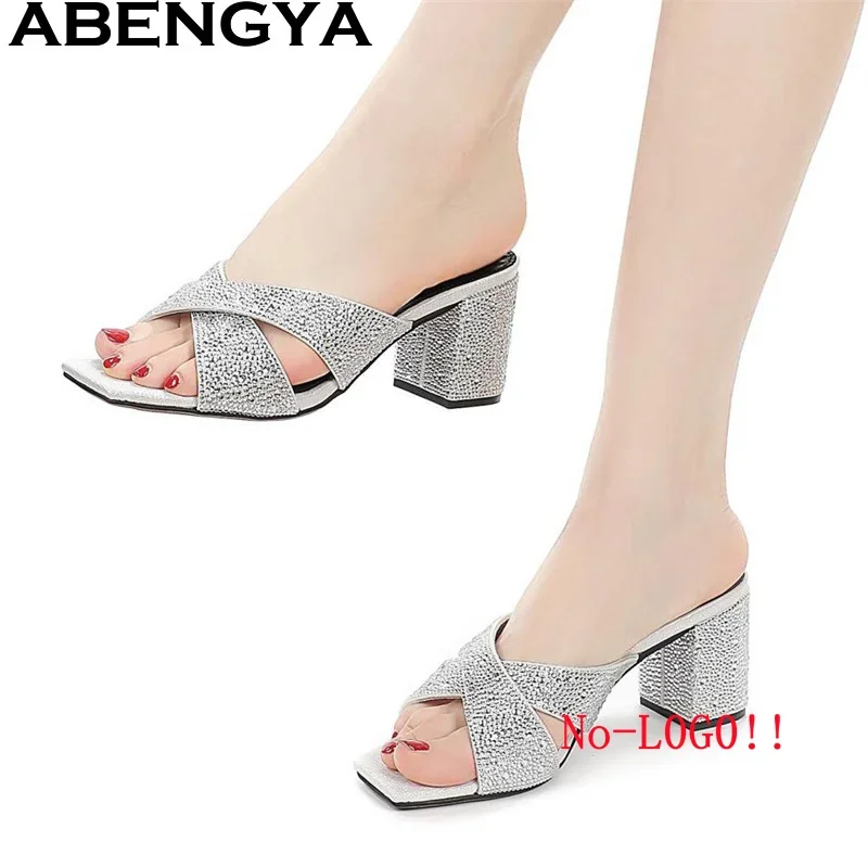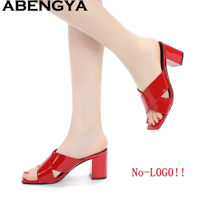 ABENGYA مفتوحة تو كعب مربع النعال للنساء بسيطة مريحة البغال النعال امرأة الصيف الكلاسيكيات أحذية حفلات الشاطئ Mujer