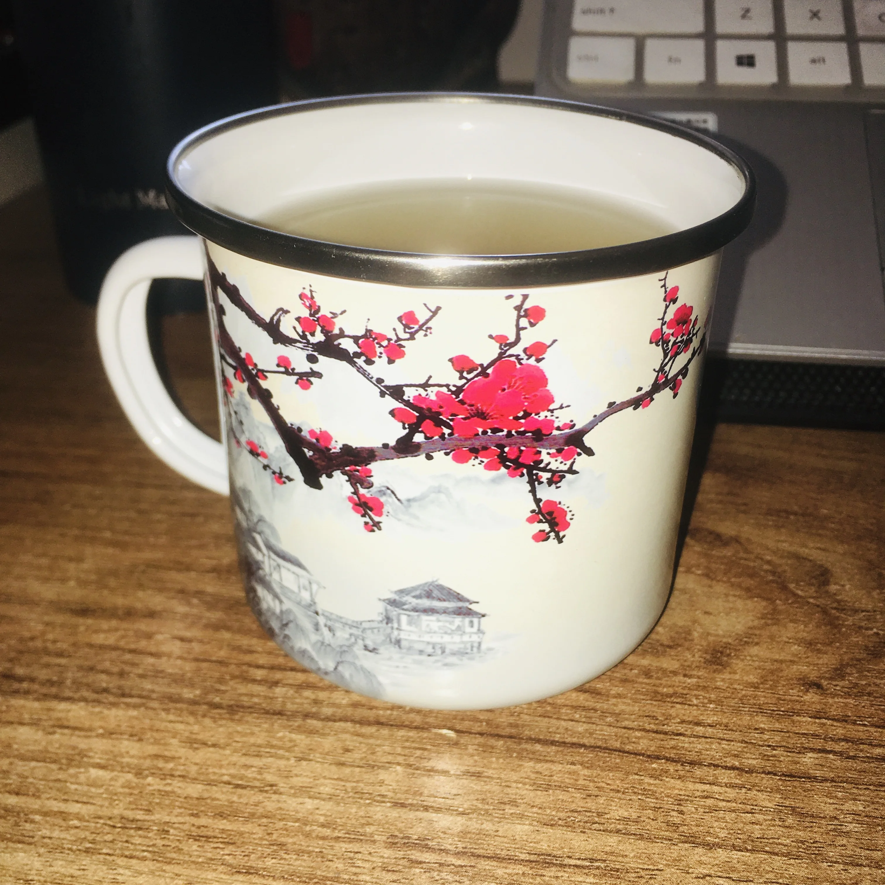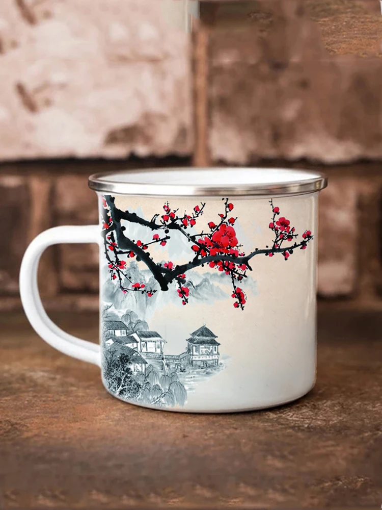 اليابان جبل فوجي ، أزهار الكرز القهوة المينا كوب 11 أوقية مكتب القهوة القدح أصدقاء هدية عيد