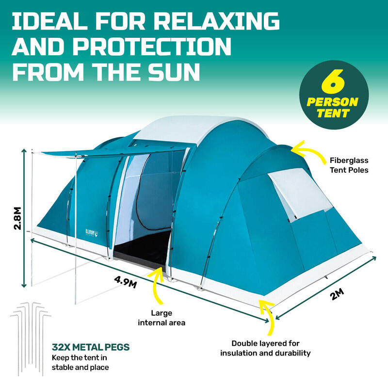 تحتاج كل رحلة تخييم إلى خيمة يمكن الاعتماد عليها – خيمة Pavillo Family Ground 6. مع غرفتي نوم ومساحة معيشة كبيرة في المنتصف ، هذه الخيمة هي الحجم المثالي لـ 6 أشخاص. سواء كنت تحب التخييم في الغابة أو بالقرب من الماء ، فإن هذه الخيمة متينة بما يكفي لتدوم. صُنعت من قماش مقاوم للحريق ودرزات مقاومة للماء ، وستكون هذه العربة الجديدة المفضلة لعائلتك! تحتوي هذه الخيمة أيضًا على 6 جيوب داخلية لتخزين إضافي وشبكة حشرات وأرضية قابلة للفصل لمزيد من المرونة. بالإضافة إلى ذلك ، من السهل إعداده وإزالته. اصطحب معك خيمة Pavillo Family Ground 6 في رحلة التخييم التالية لتستمتع بالنوم في نهاية المطاف!