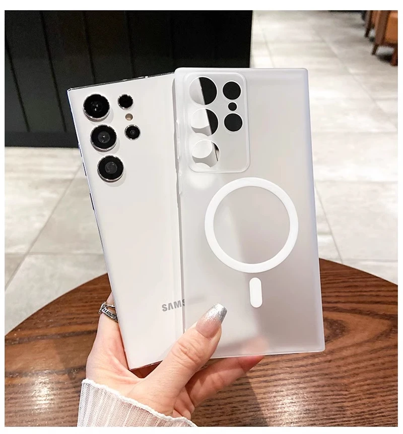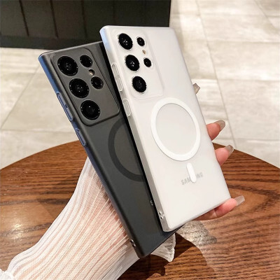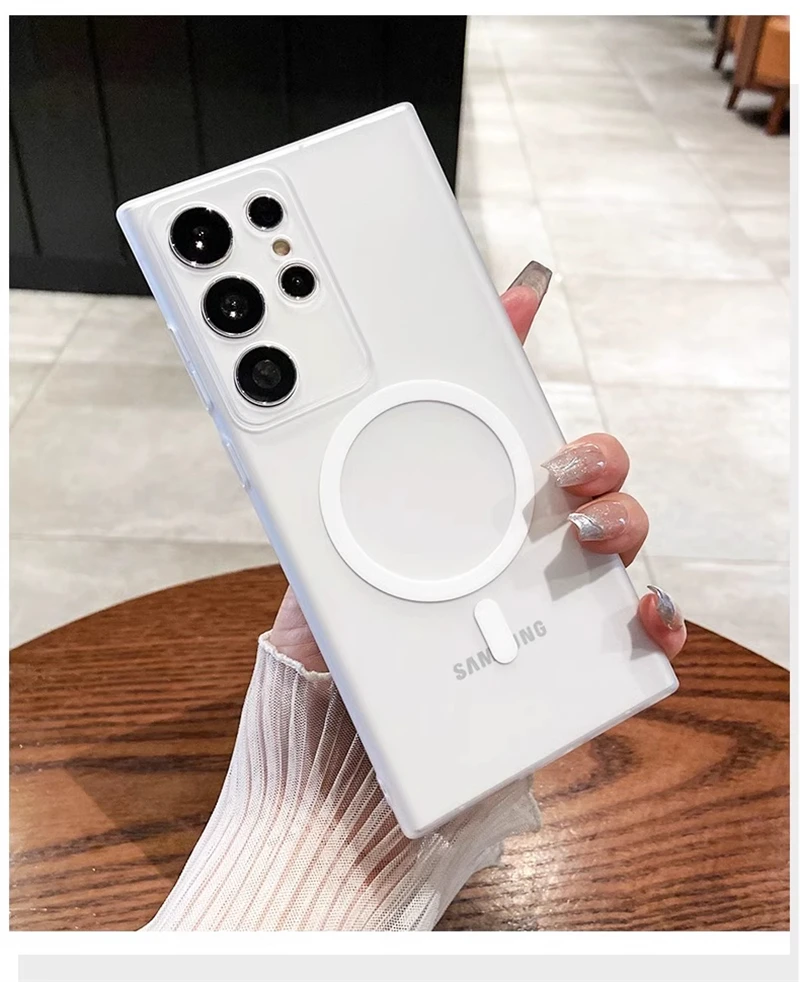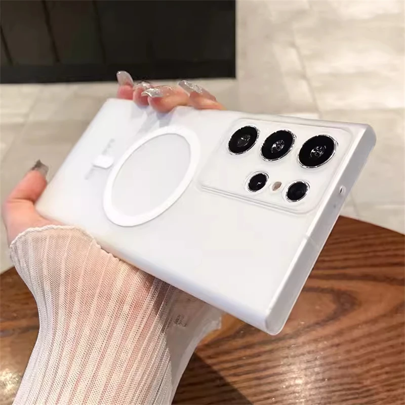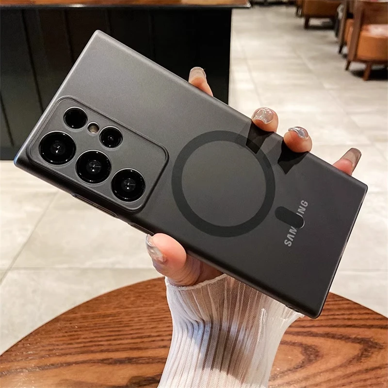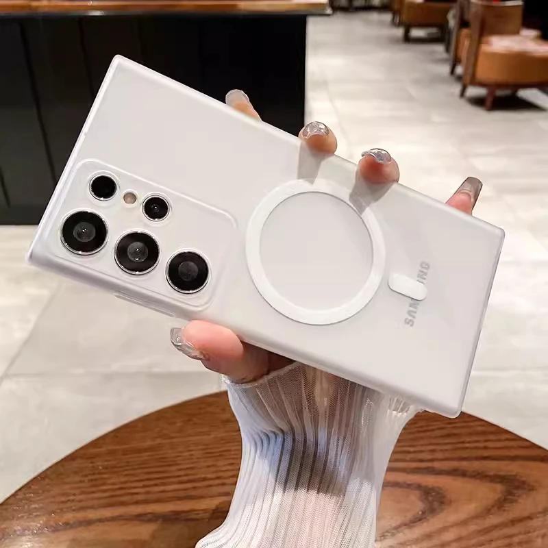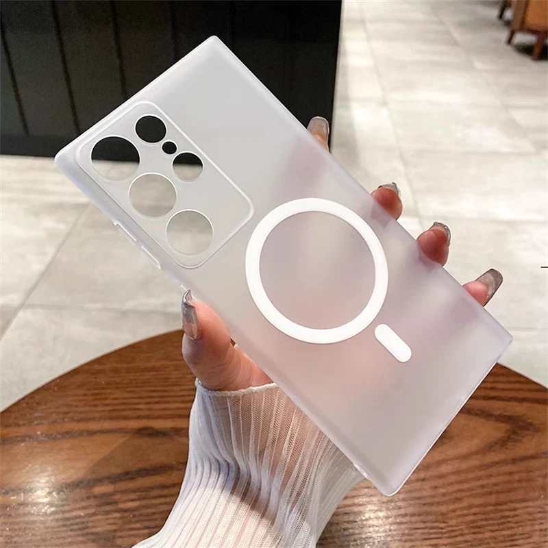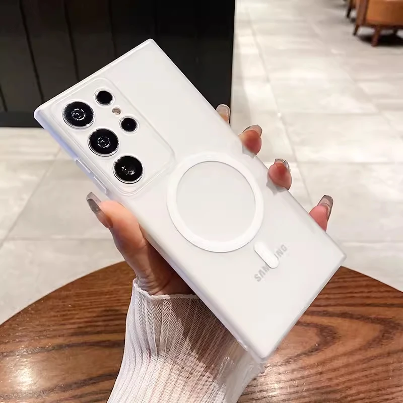 حافظة شفافة غير لامعة رفيعة للغاية من Magsafe لهاتف سامسونج S25 S24 S23 S22 Ultra Plus غطاء شفاف لاسلكي مغناطيسي