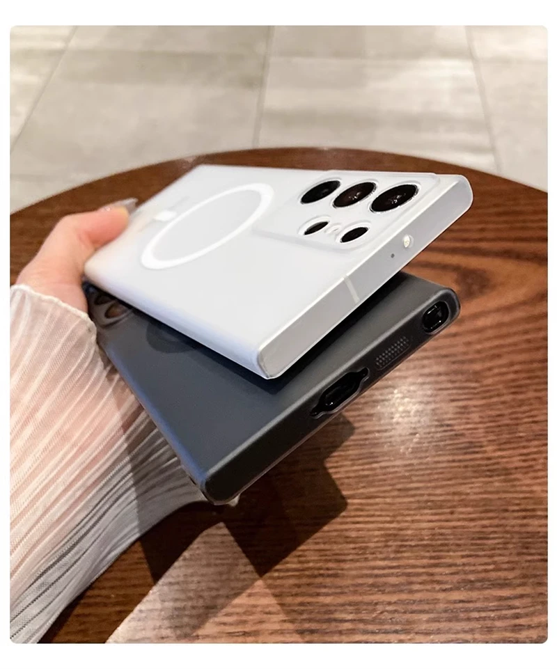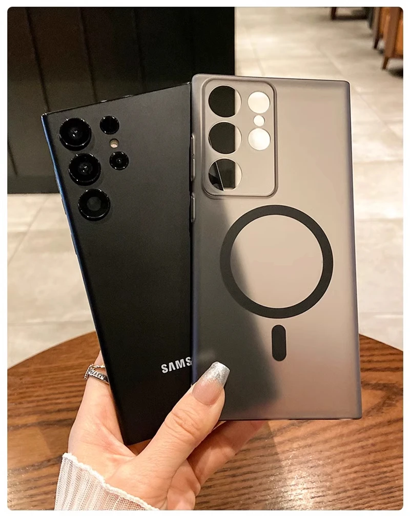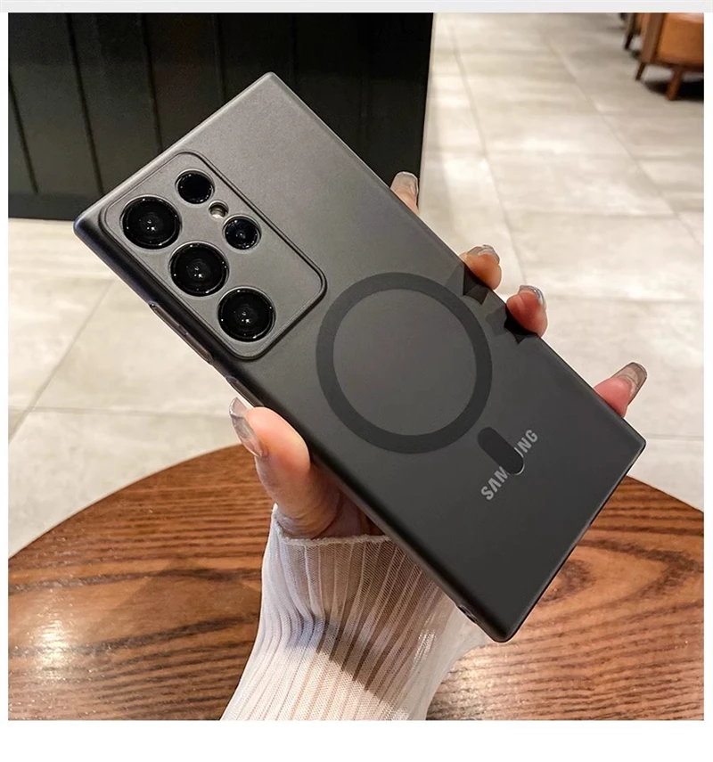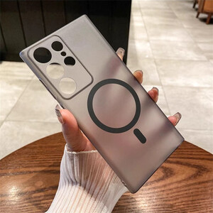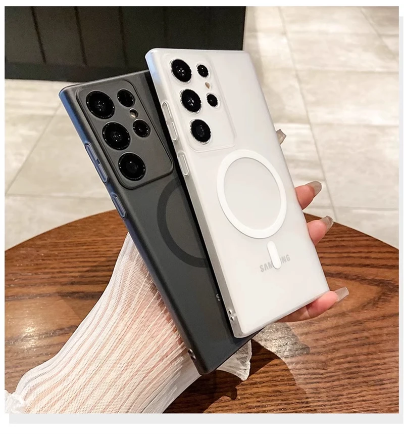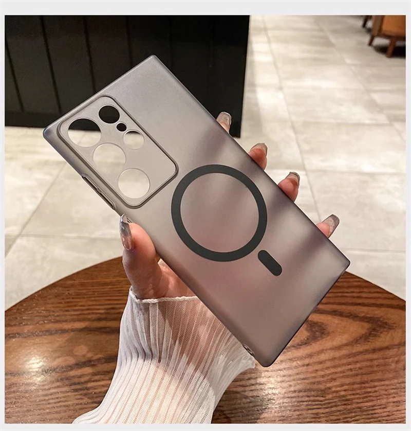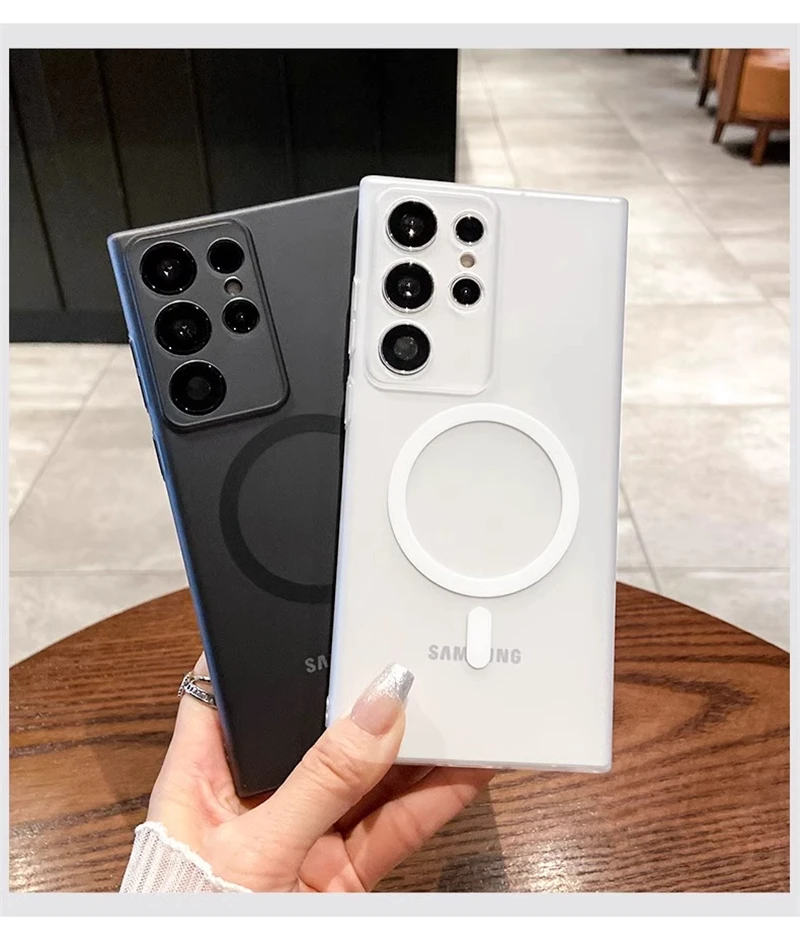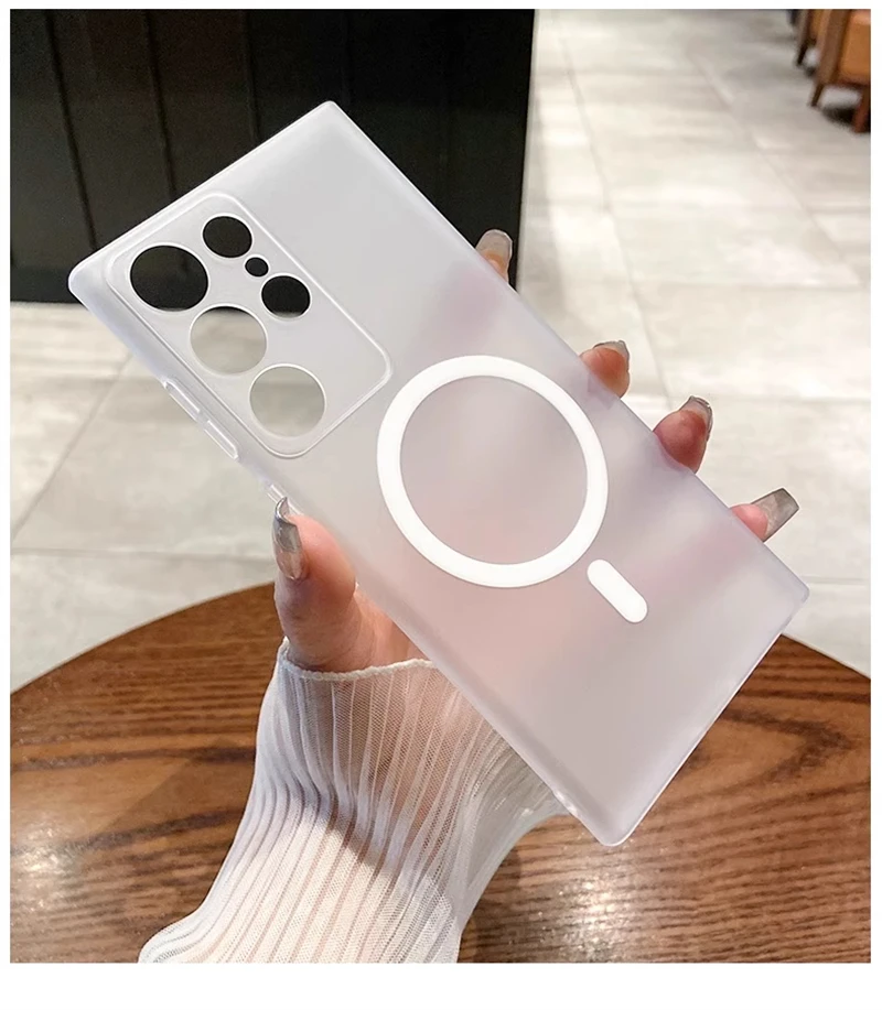 حافظة شفافة غير لامعة رفيعة للغاية من Magsafe لهاتف سامسونج S25 S24 S23 S22 Ultra Plus غطاء شفاف لاسلكي مغناطيسي