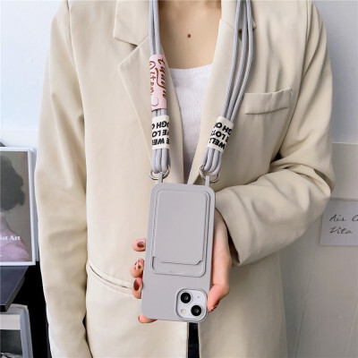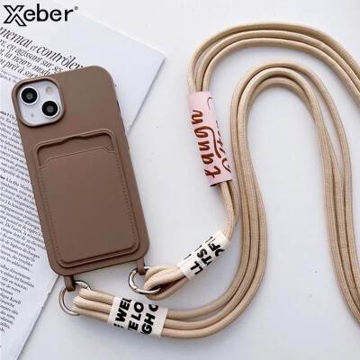 حافظة محفظة بطاقات بحزام متقاطعة مع الجسم جراب أيفون 15 برو ماكس 14 13 12 11 قلادة كتف غطاء سيليكون ناعم للصدمات