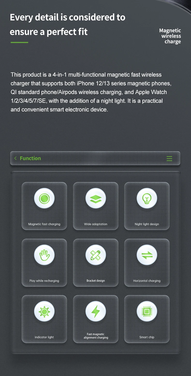 كن أول من يقيم “حامل شاحن لاسلكي مغناطيسي سريع ، محطة شحن ليد ، 4 في 1 ، macafe لهواتف آيفون 15 ، 14 ، 13 ، 12 Pro Max ، ساعة أبل ، Airpods”