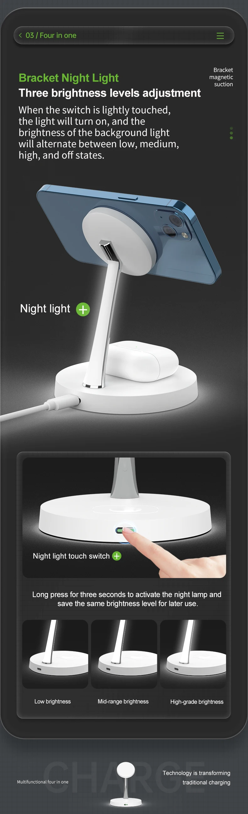 【ما تحصل عليه 】1 × حامل شاحن 3 في 1 ، 1 × كابل USB إلى C ، 1 × دليل المستخدم