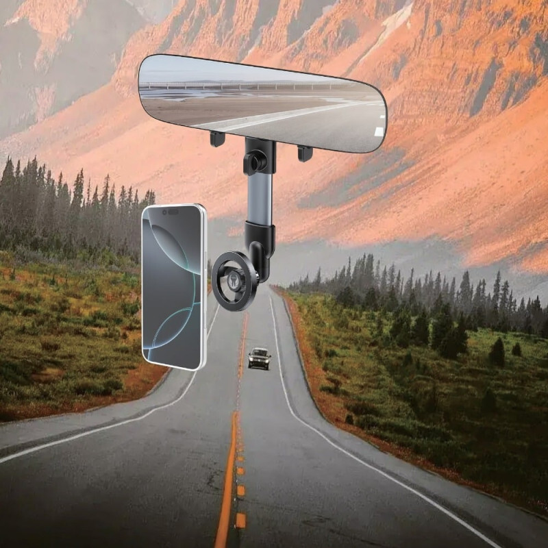 - ثبات فائق على المرآة: صُمم ليثبت بإحكام خلف مرآة الرؤية الخلفية، مما يجعله مثالياً لمتابعة خرائط الطريق أو تشغيل المحتوى للركاب في المقاعد الخلفية.