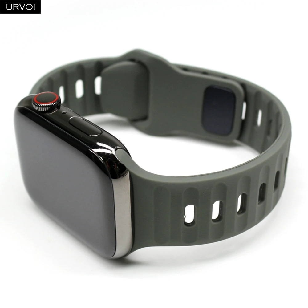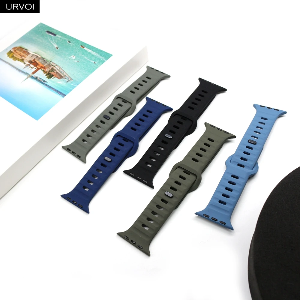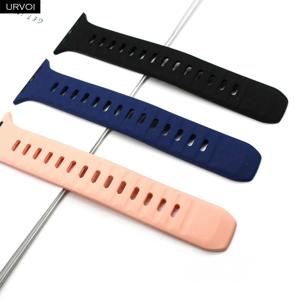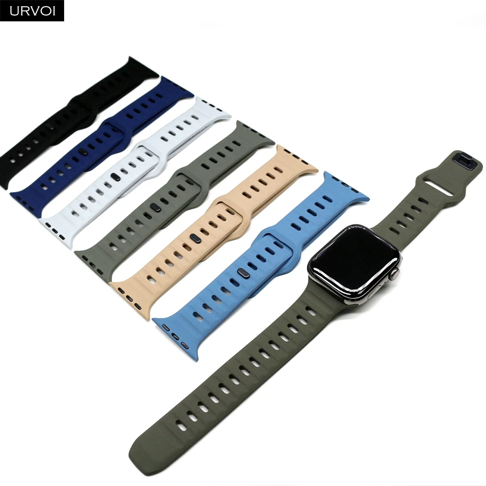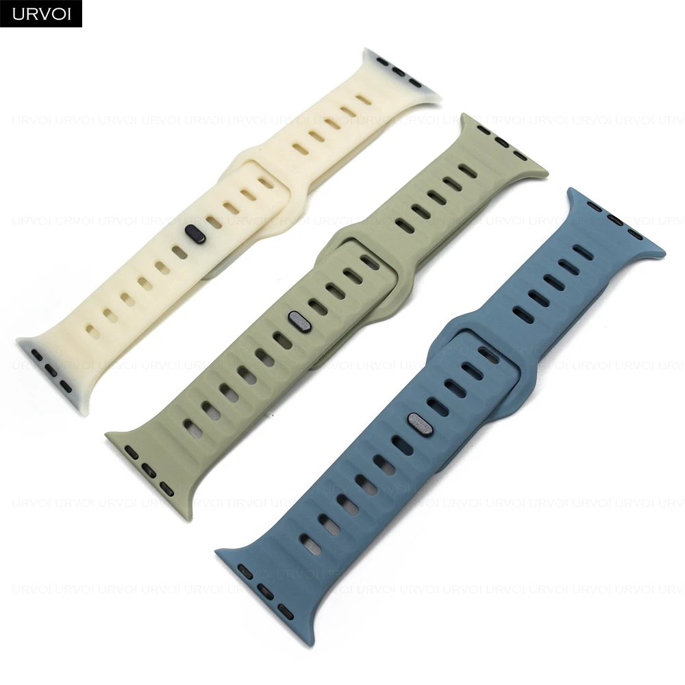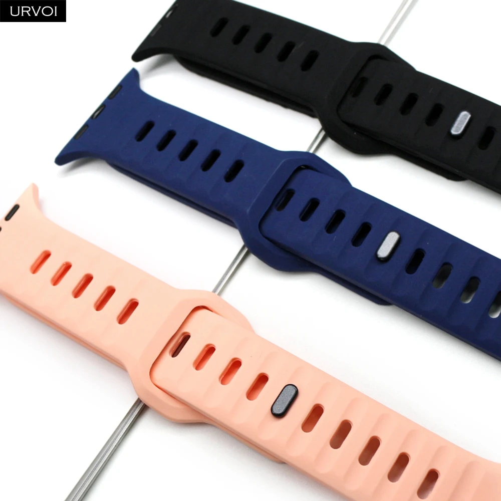 URVOI سيليكون باند لساعة أبل الترا 3 2 سلسلة 11 10 9 8 7 6 SE 54321 حزام لساعة iWatch تنفس دبوس و-tuck إغلاق 42 46 49 مللي متر