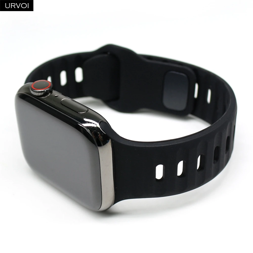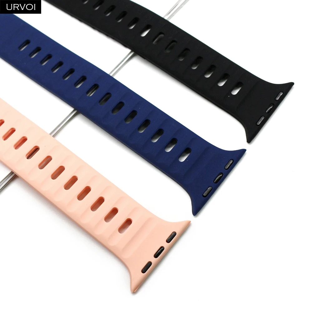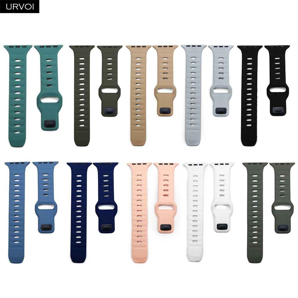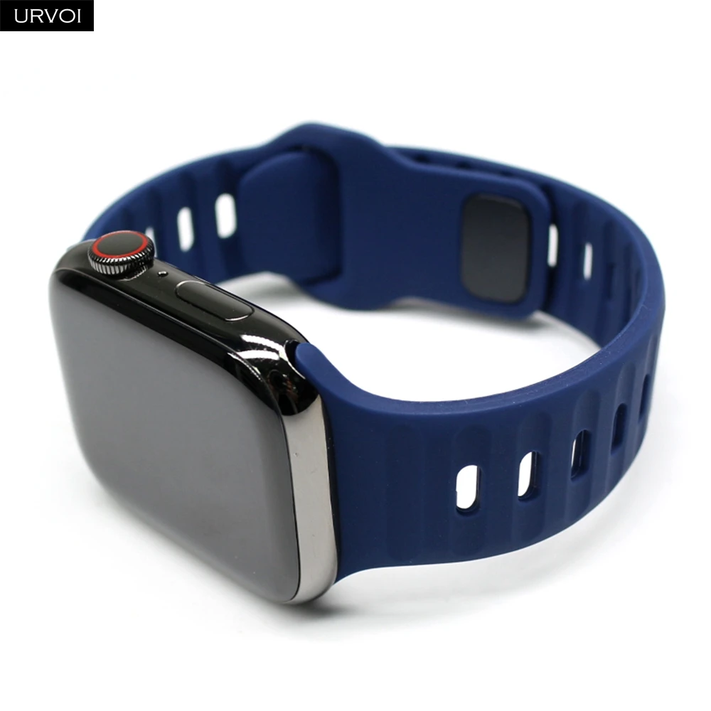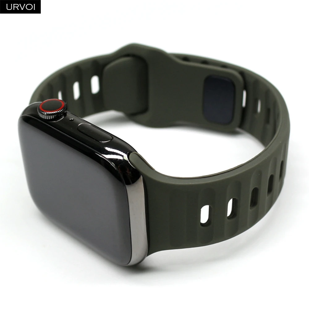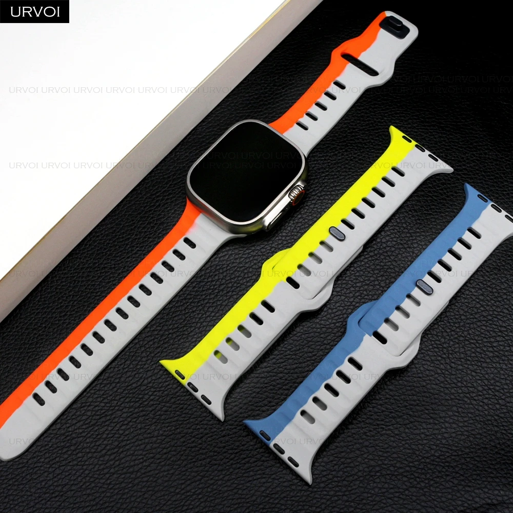 URVOI سيليكون باند لساعة أبل الترا 3 2 سلسلة 11 10 9 8 7 6 SE 54321 حزام لساعة iWatch تنفس دبوس و-tuck إغلاق 42 46 49 مللي متر