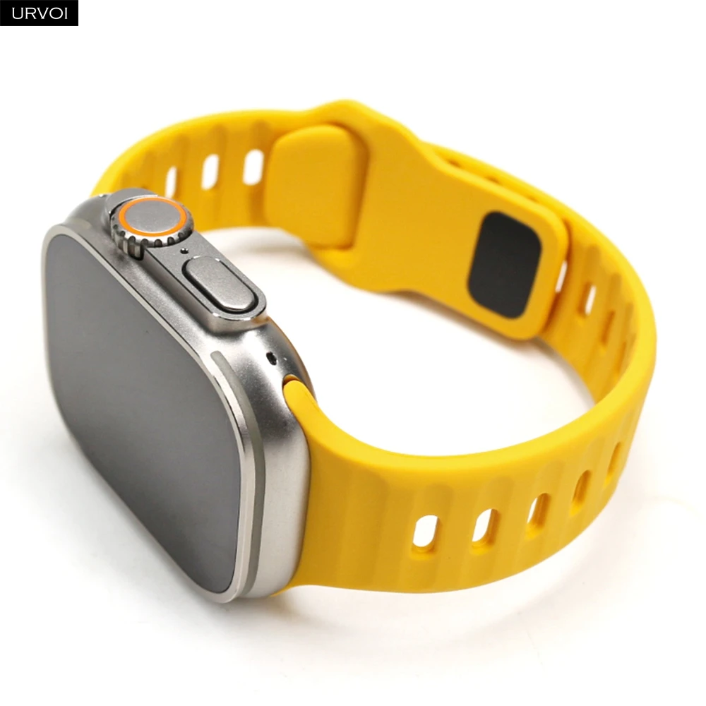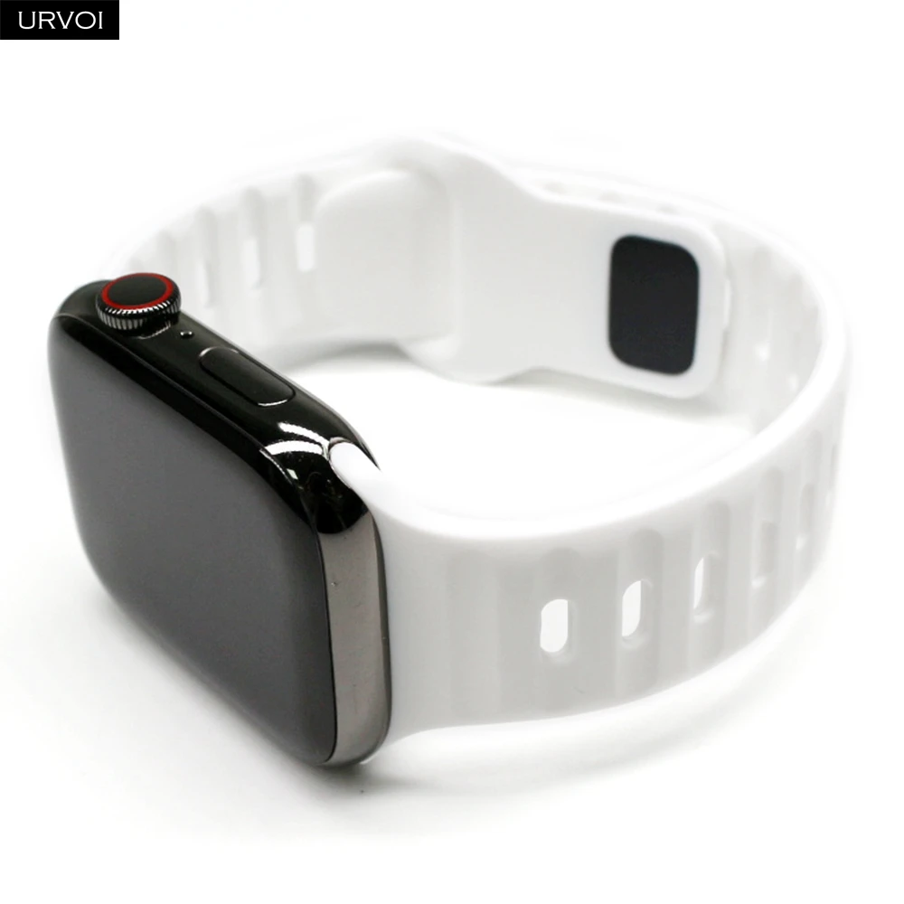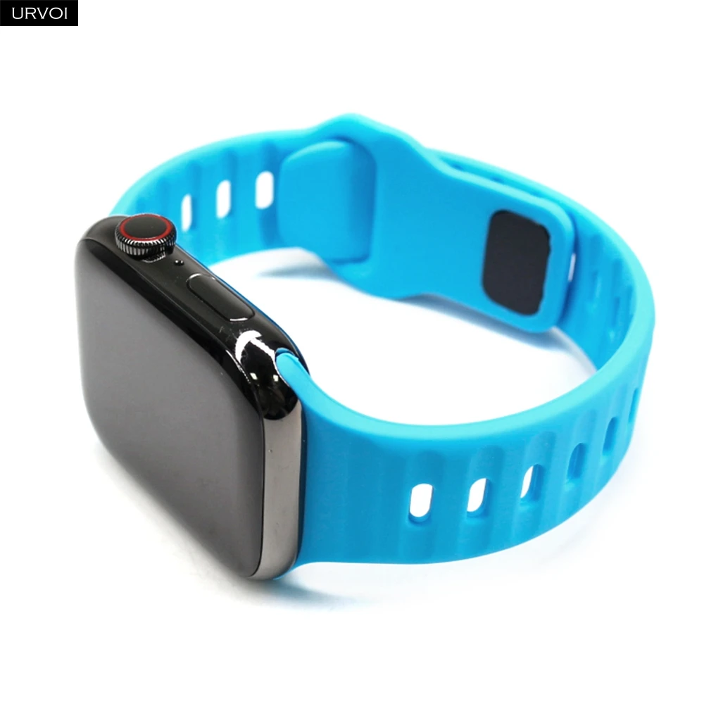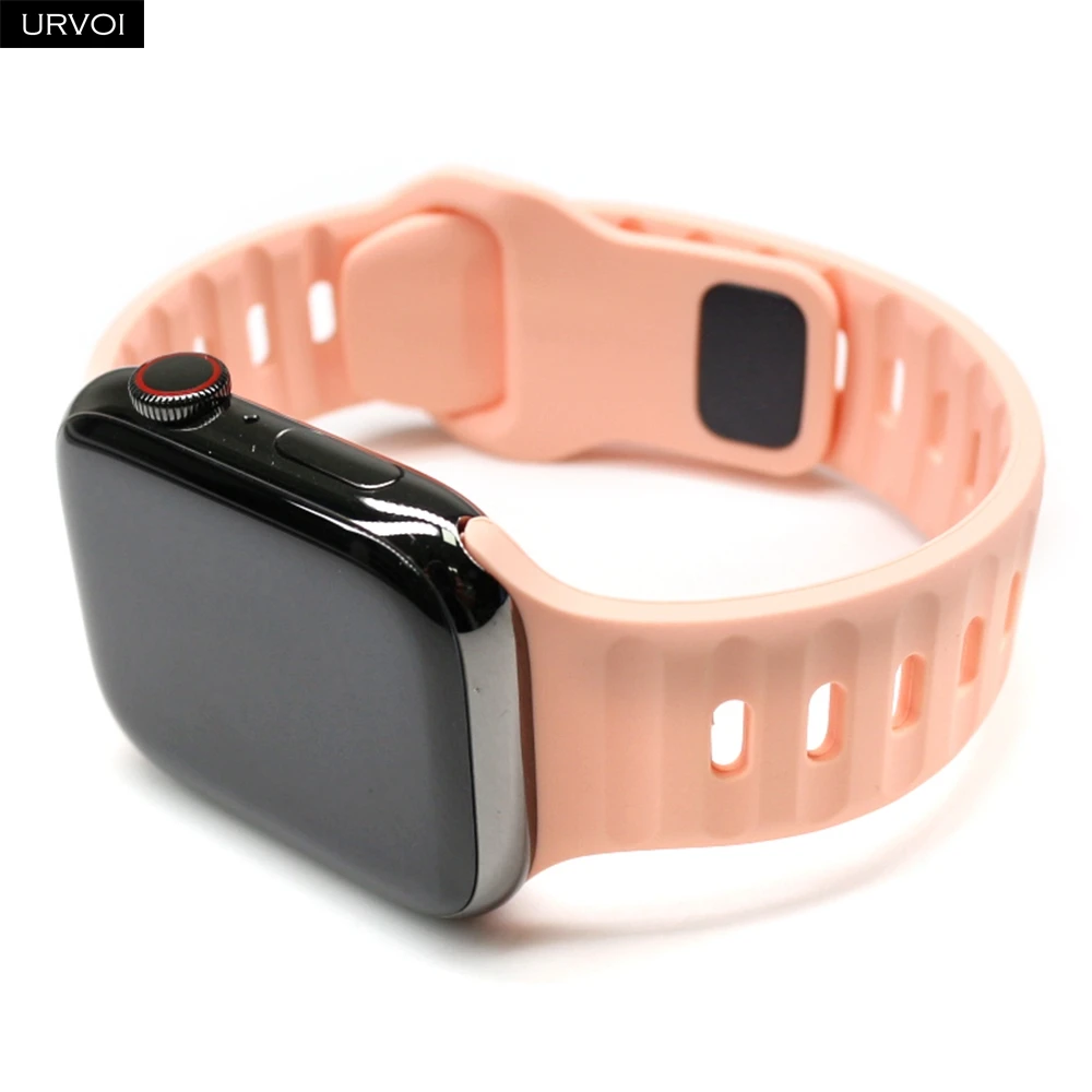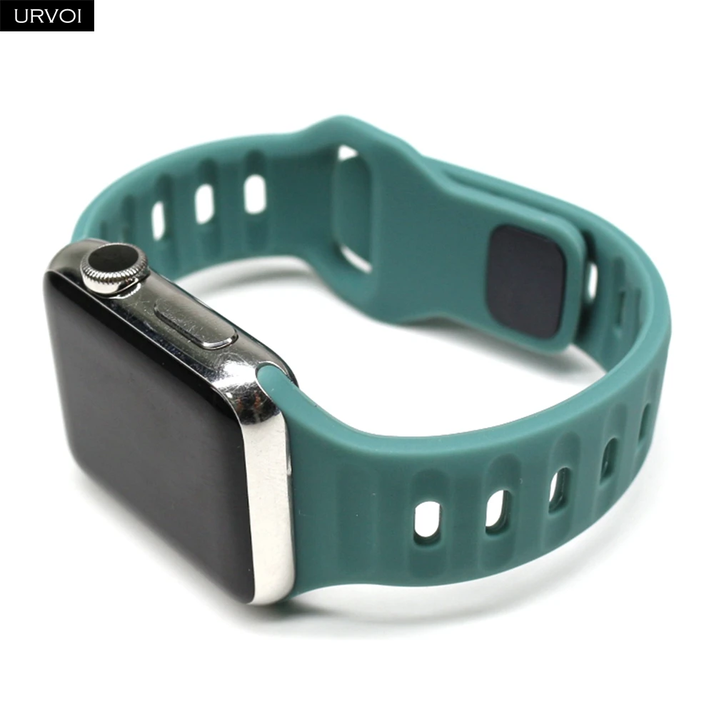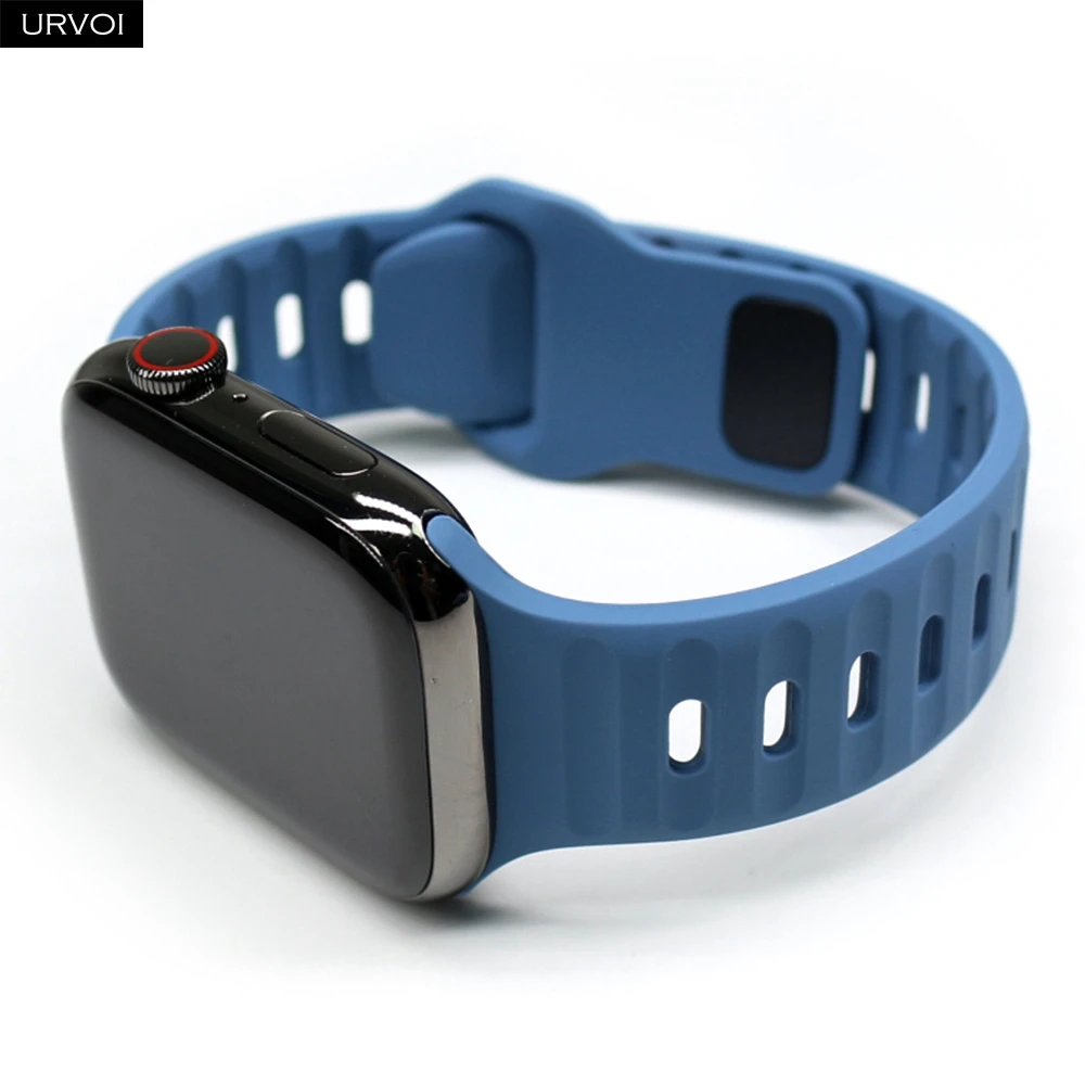 URVOI سيليكون باند لساعة أبل الترا 3 2 سلسلة 11 10 9 8 7 6 SE 54321 حزام لساعة iWatch تنفس دبوس و-tuck إغلاق 42 46 49 مللي متر