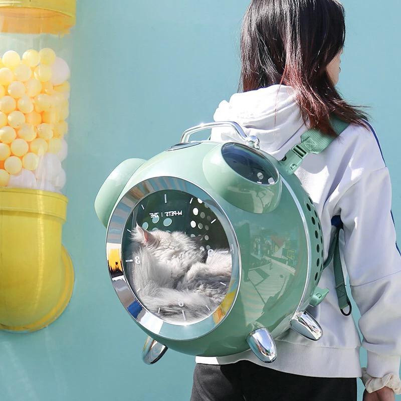 حقيبة تنقل للقطط مع وجود مقياس لدرجة الحرارة والرطوبة شكل منبه