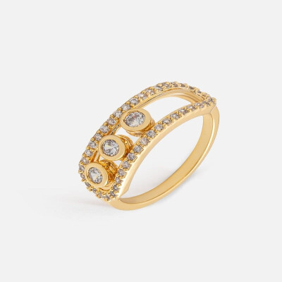 • التفاصيل: خاتم يتزين بصفين مفرغه مرصعه بفصوص الزركون وتتزين فالمنتصف بعدد ثلاث من احجار الزركون