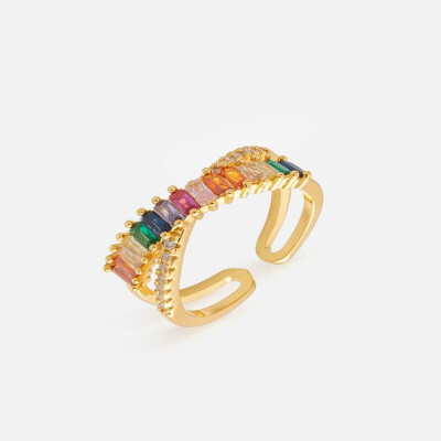 • التفاصيل: خاتم بتصميم متداخل يتزين بفصوص وأحجار من الزركون اللامع و الملون