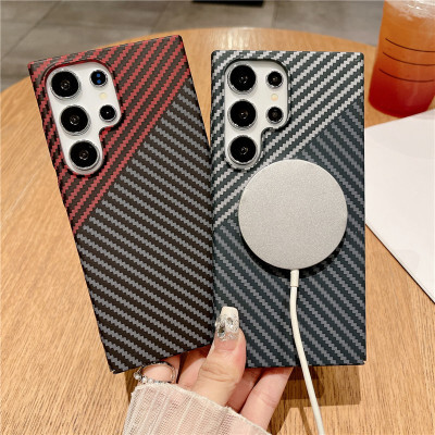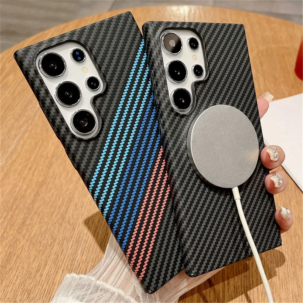 رقيقة جدا ألياف الكربون الملمس درع المغناطيسي لحالة Magsafe لسامسونج S25 S24 S23 S22 نوت 20 الترا 10 زائد غطاء الكمبيوتر الصلب