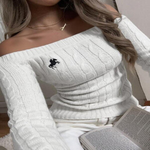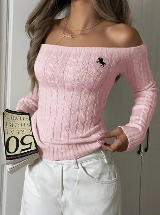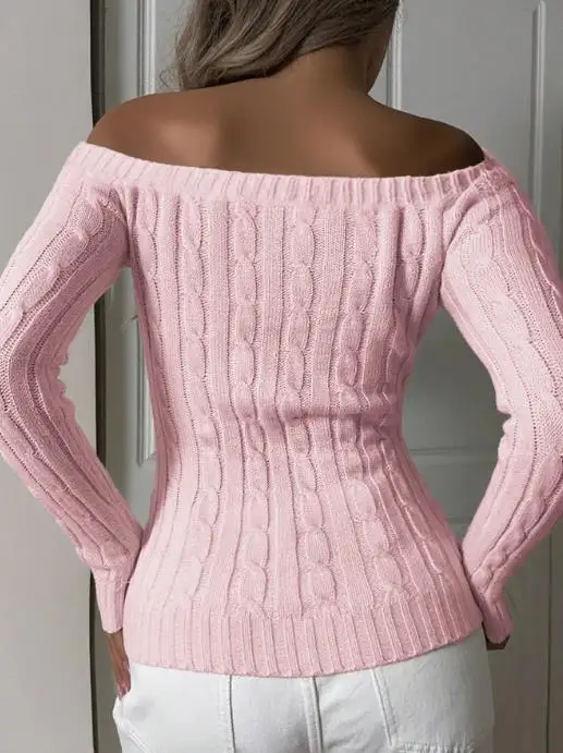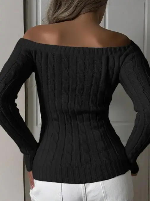 موضة وبسيطة بدون أكتاف كم طويل سترة ملابس نسائية الخريف/الشتاء 2025 أنثى عادية سليم صالح البلوفرات الأعلى