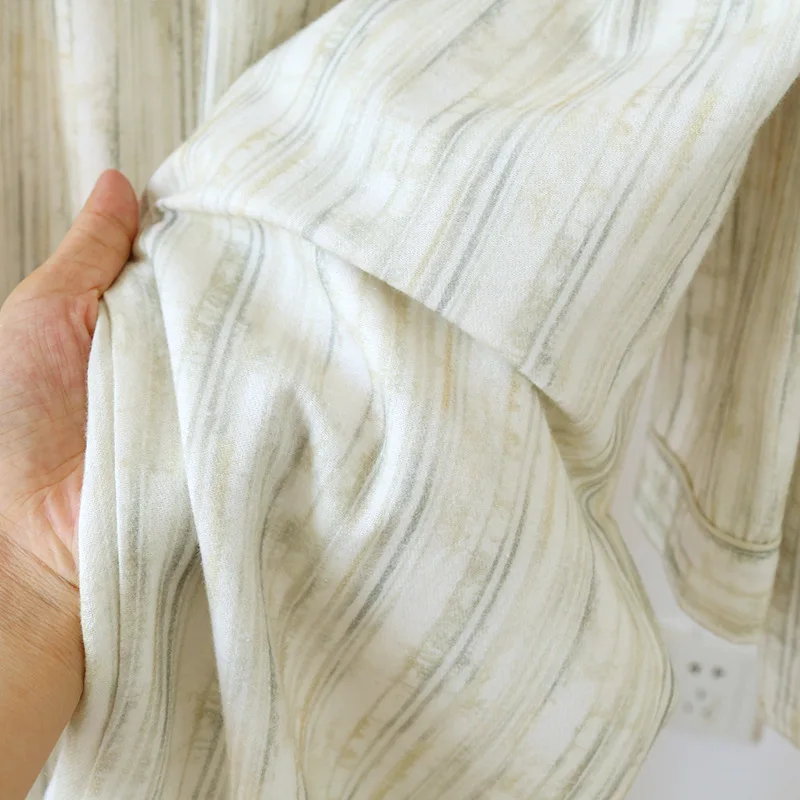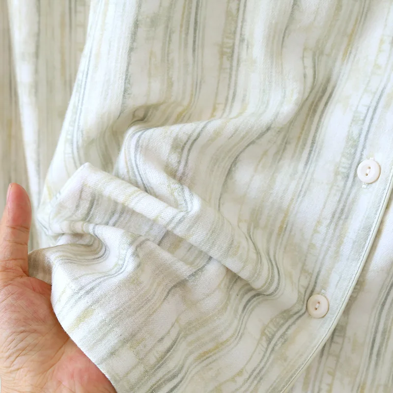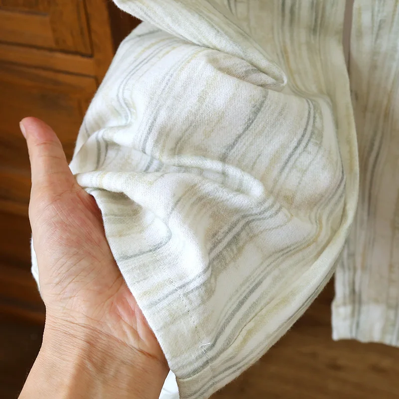 نصيحة: الشاش والكريب لهما خصائص الانكماش.ينكمش حوالي 1-3 سم ~ عند التنظيف، لا تغمره في الماء الساخن أو الدافئ.يوصى بغسله يدويًا بدلاً من الغسالة.