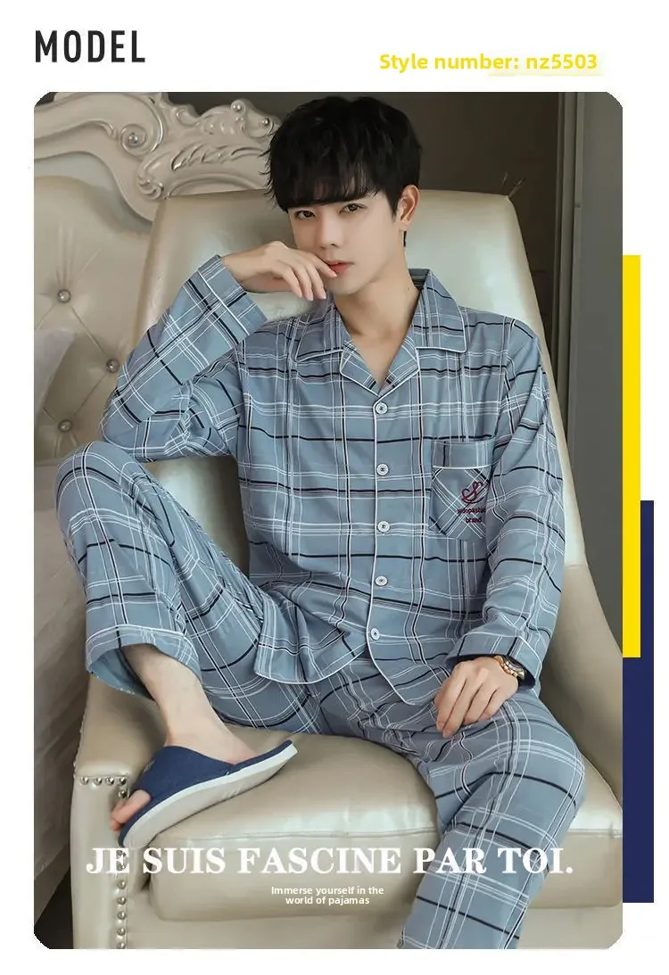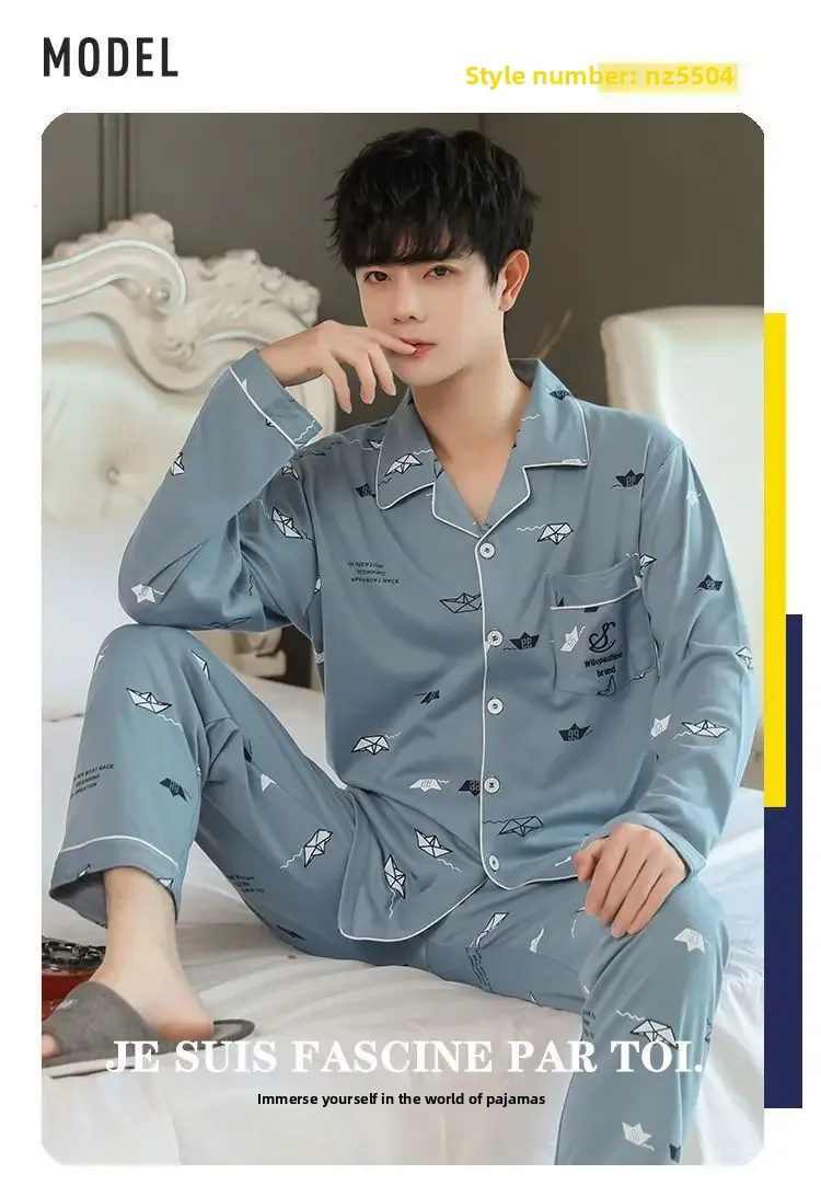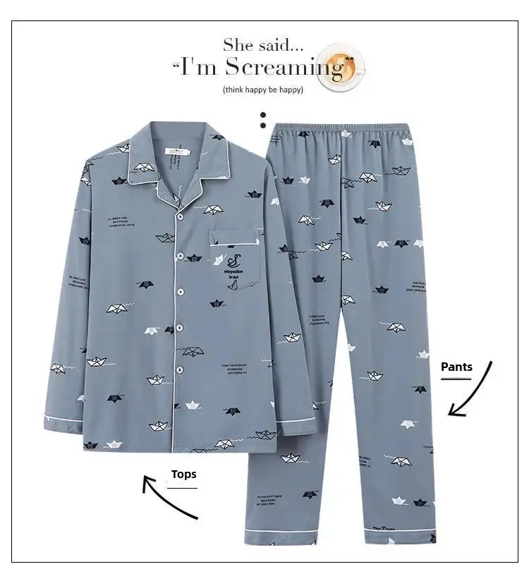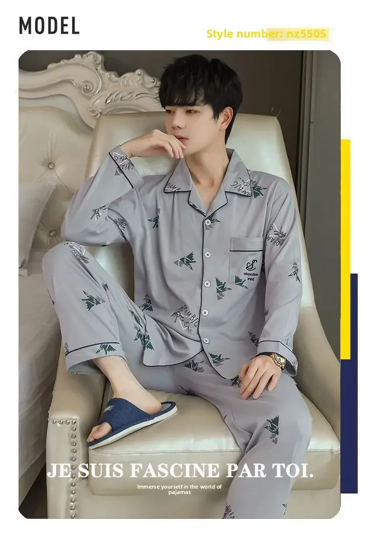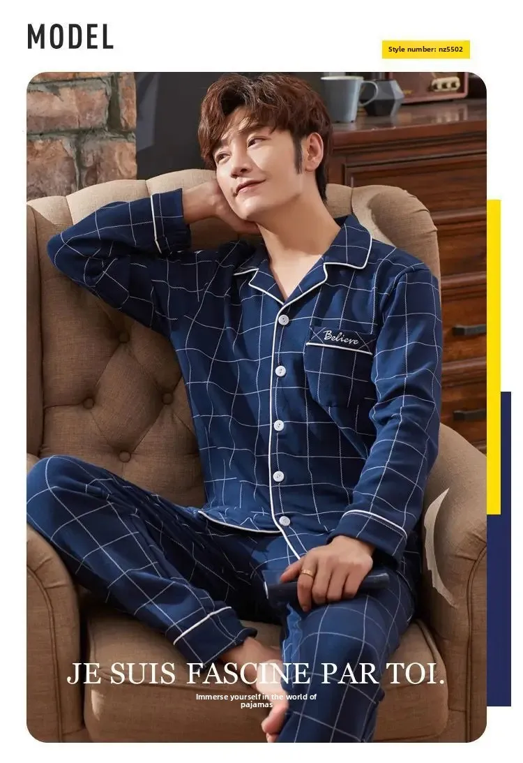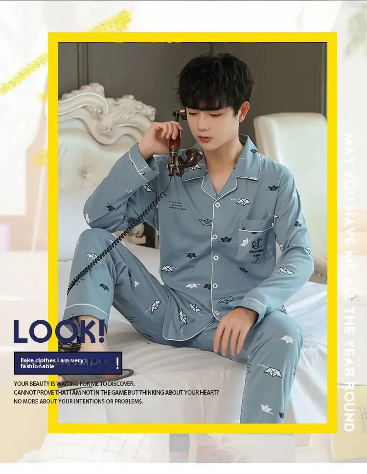 كن أول من يقيم “طقم ملابس نوم رجالي من القطن الخالص بأكمام طويلة ملابس منزلية بسيطة لربيع الخريف والصيف مناسبة لمنتصف العمر والشباب”