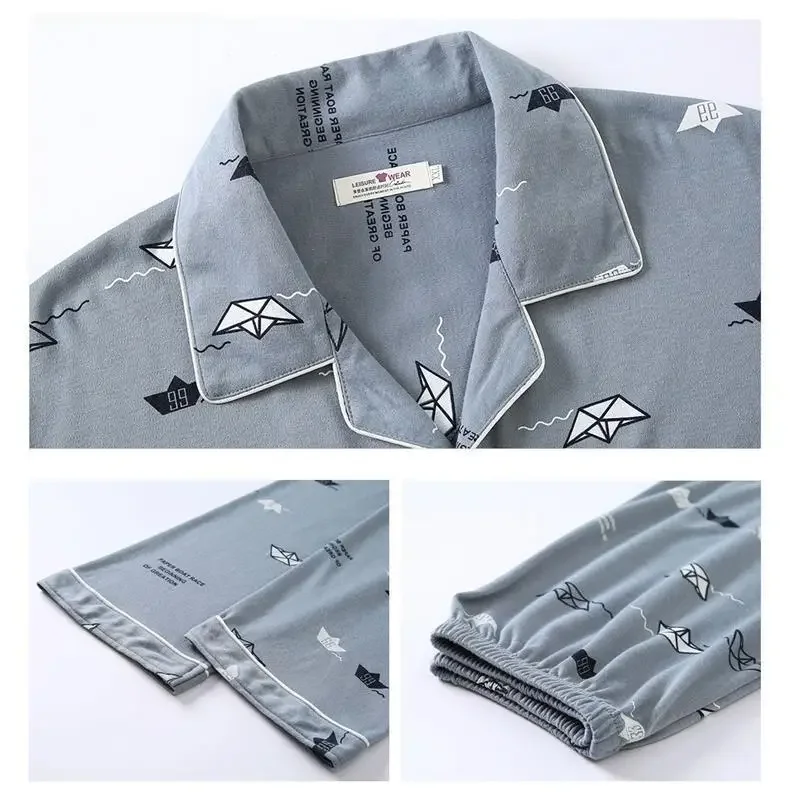 • مادة القطن الخالص:مصنوعة من القطن الخالص، توفر هذه البيجامات ملمسًا ناعمًا وجيد التهوية، ومثالية ليالي الربيع والخريف.