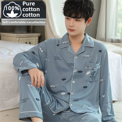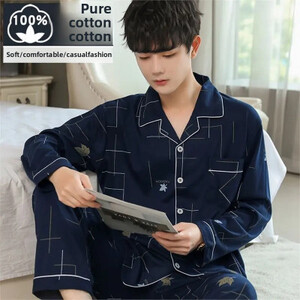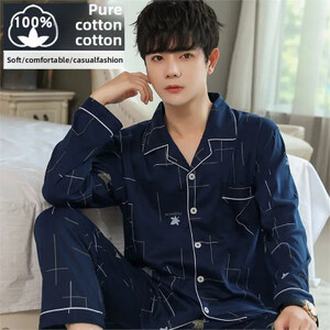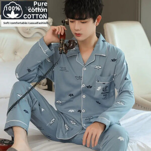 كن أول من يقيم “طقم ملابس نوم رجالي من القطن الخالص بأكمام طويلة ملابس منزلية بسيطة لربيع الخريف والصيف مناسبة لمنتصف العمر والشباب”