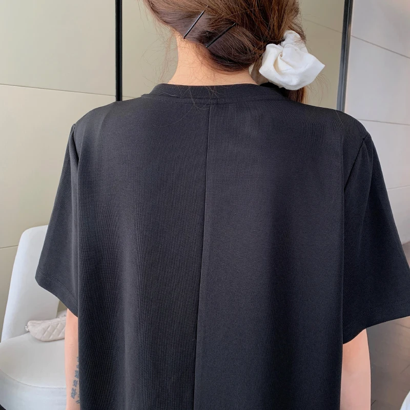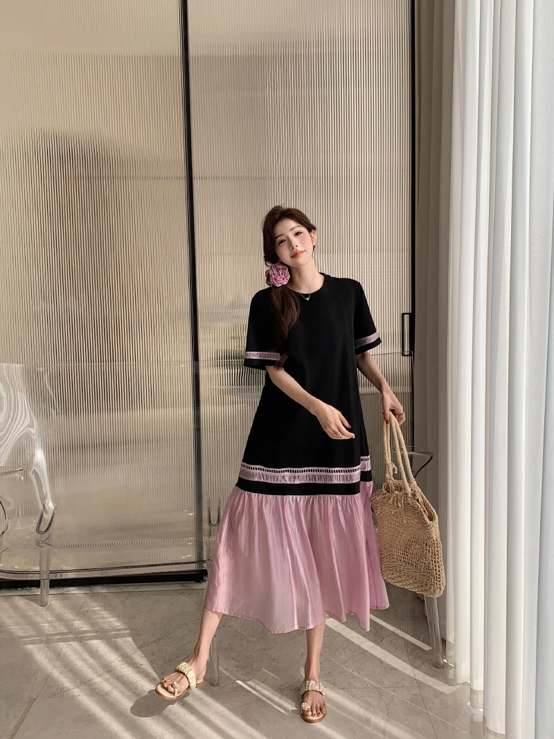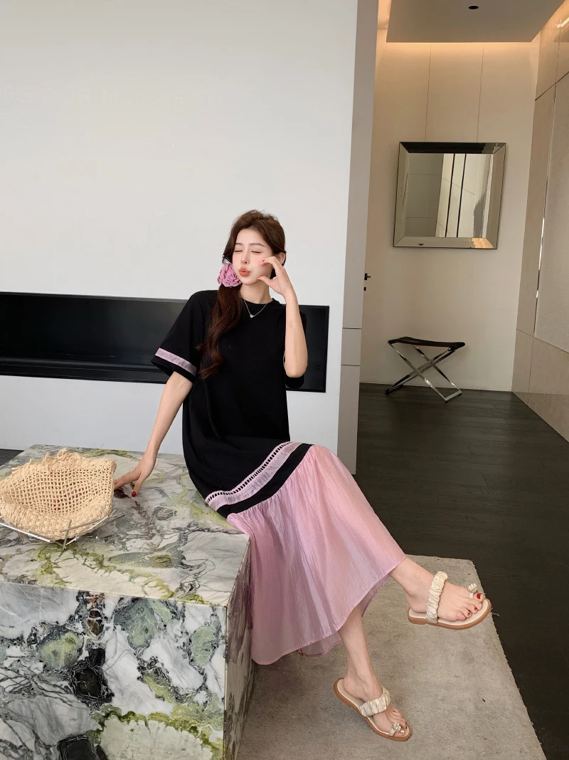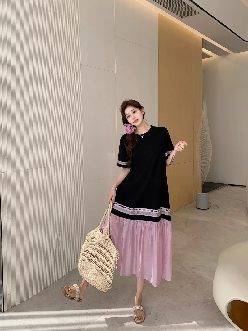 مصمم خصيصًا لفصل الصيف، يتميز هذا الفستان متوسط الطول بقصة مريحة وأكمام قصيرة وياقة دائرية كاجوال، مما يجعله مثاليًا لمختلف المناسبات.