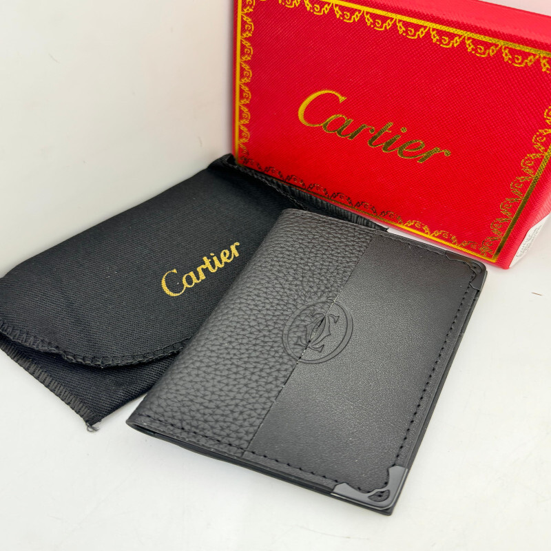 باللون الأسود مع زوايا معدنية أنيقة وشعار Cartier الكلاسيكي.