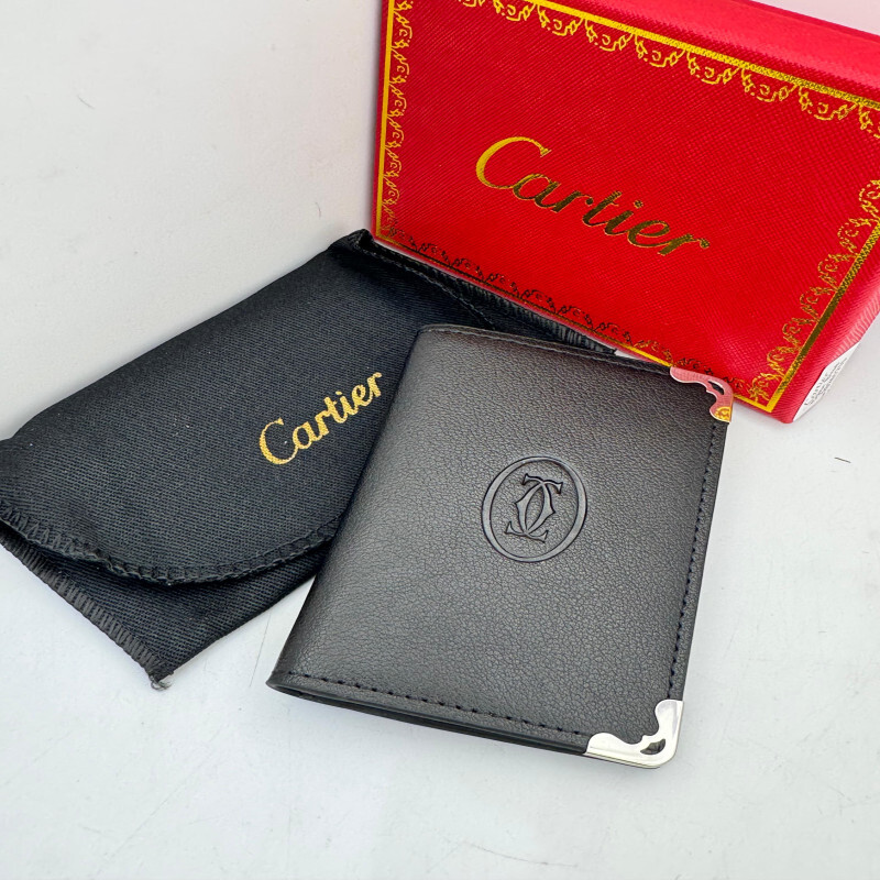 باللون الأسود مع زوايا معدنية أنيقة باللون الاسود وشعار Cartier الكلاسيكي.