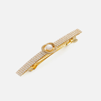 - التفاصيل: مشبك بشكل طولي مرصع بفصوص الزركون اللامعه ويتزين بحلية بشكل فص لؤلؤ في المنتصف