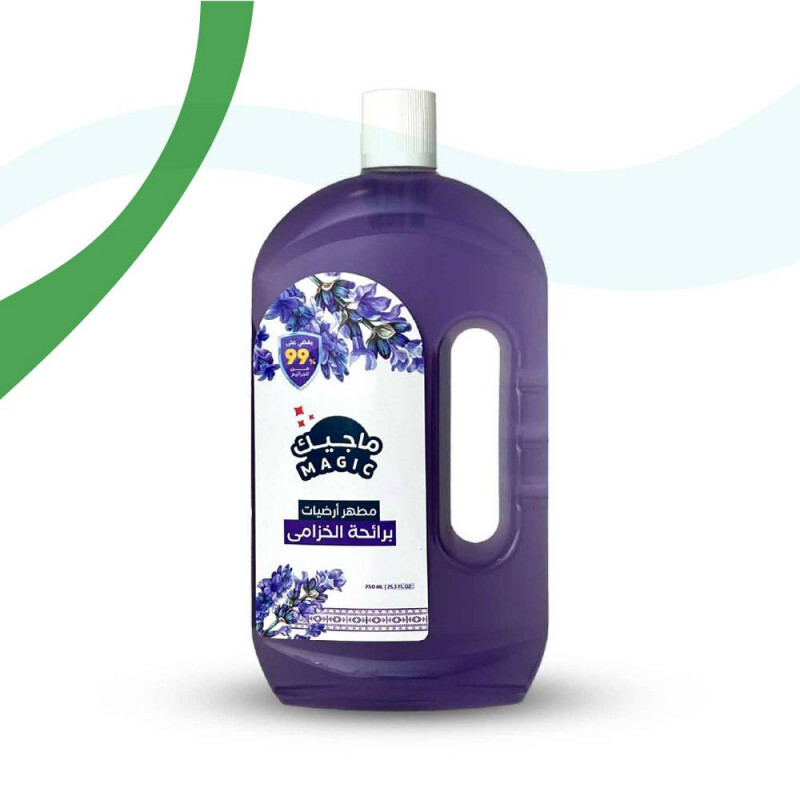 مطهر ماجيك للأرضيات بقوة فائقة ورائحة ساحرة وجميلة يساعد على حماية عائلتك من الجراثيم ويجعل منزلك نظيف برائحة الخزامى المنعشة.