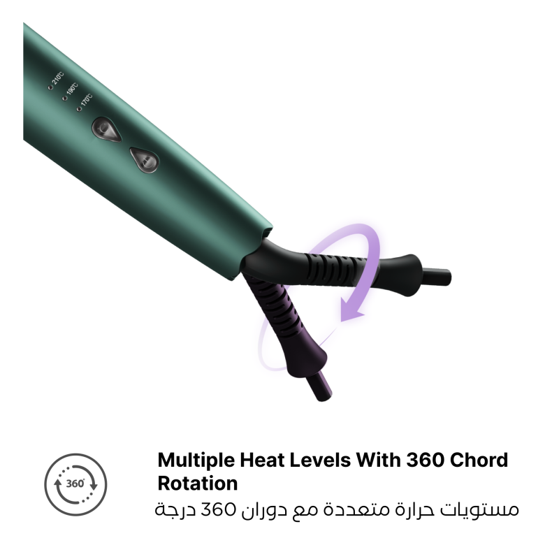 يتوفر بأربع درجات حرارة ليتناسب مع جميع أنواع الشعر: 360 و 400 و 440 و 480 فهرنهايت