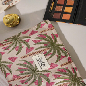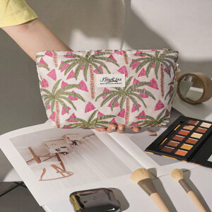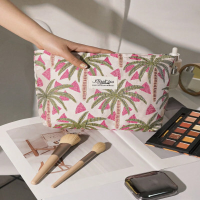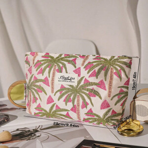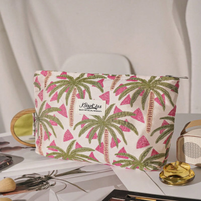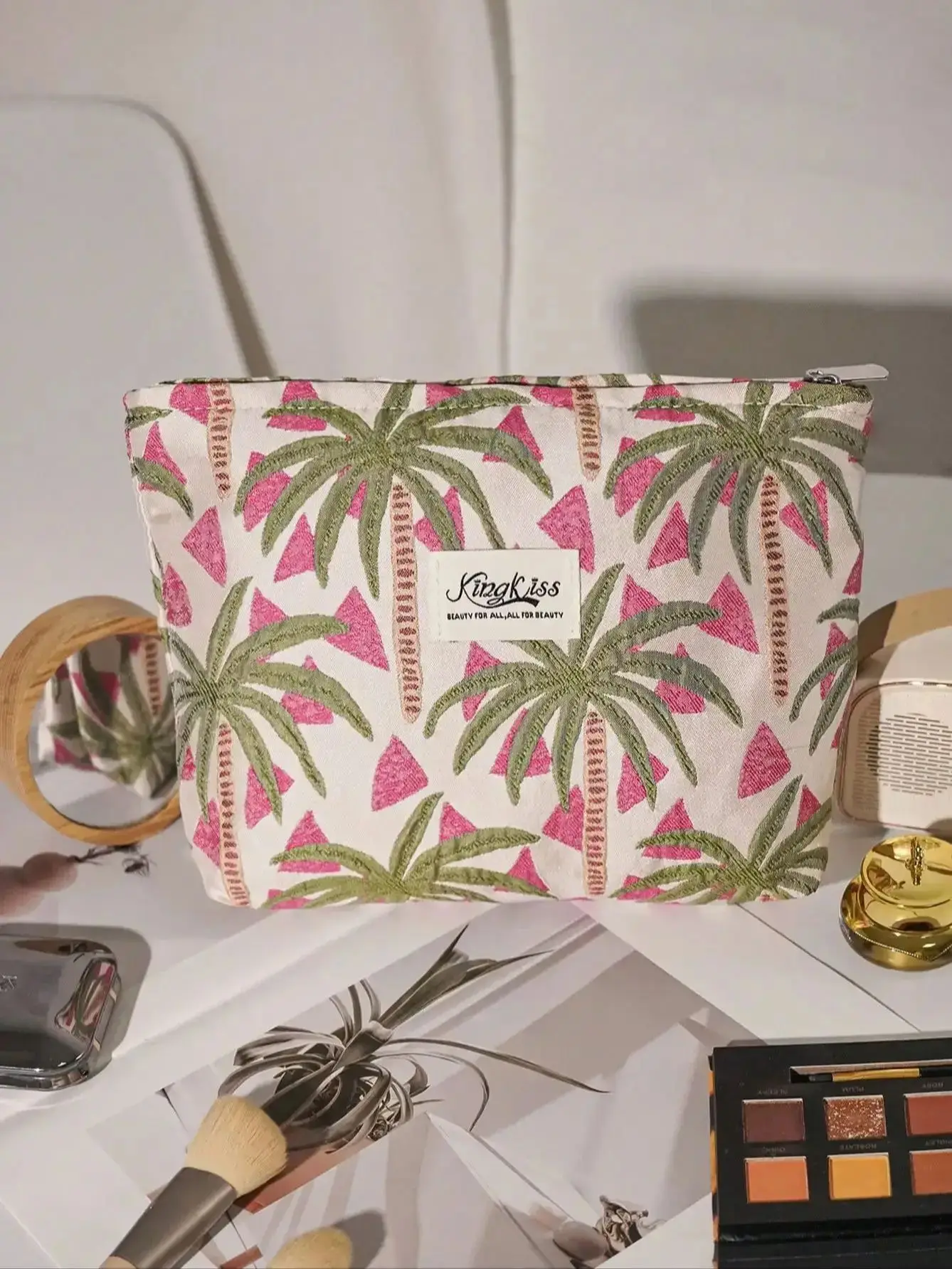 تتميز حقيبة المكياج "KingKiss" بتصميم جديد مع شجرة النخيل وأنماط هندسية مثلثة وردية، مما يضفي لمسة صيفية قوية. القماش مريح الملمس ومتين. الإغلاق بسحاب يجعل من السهل الوصول إلى أغراضك، والجزء الداخلي به مساحة منظمة جيدًا، قادرة على حمل منتجات التجميل المختلفة بسهولة. سواء كنت تخرج يوميًا أو تسافر، فهو خيار رائع، حيث يعمل كرفيق تجميل أنيق وعملي.