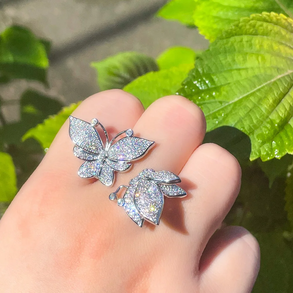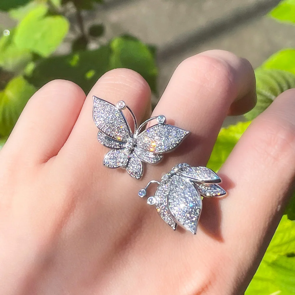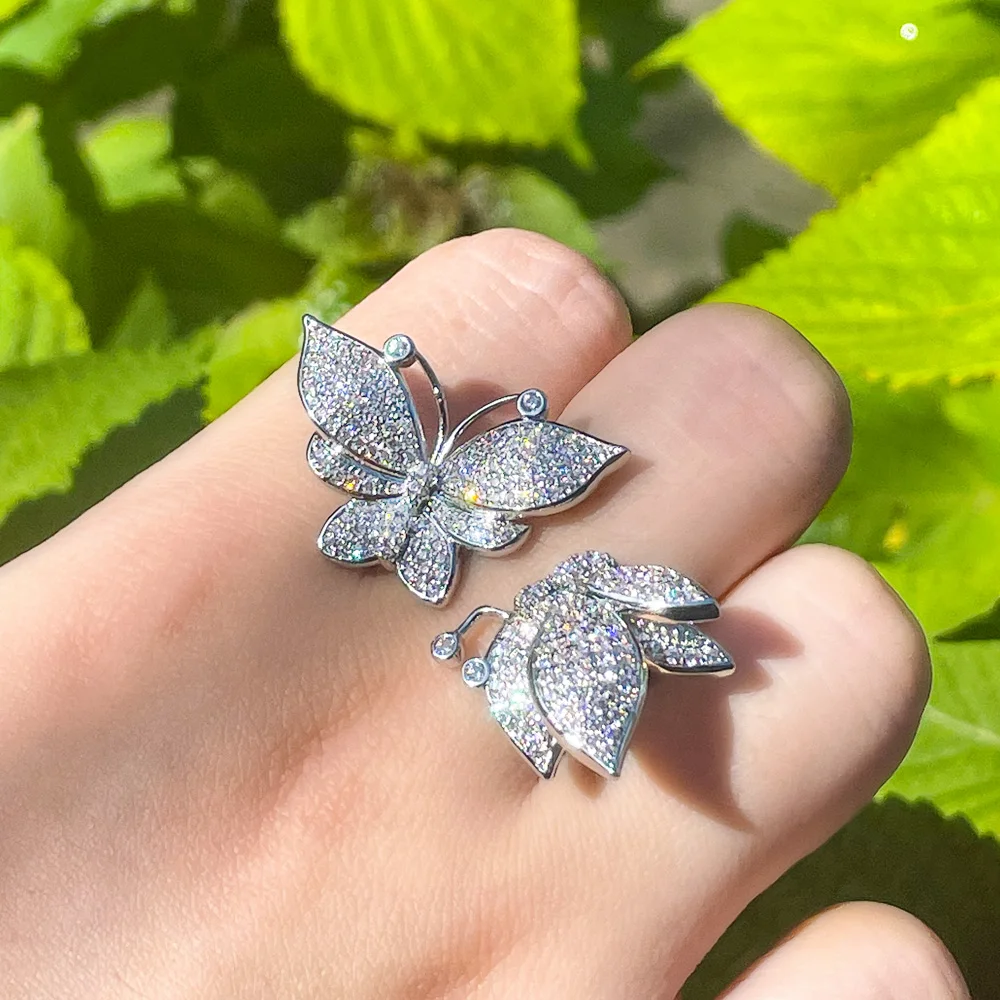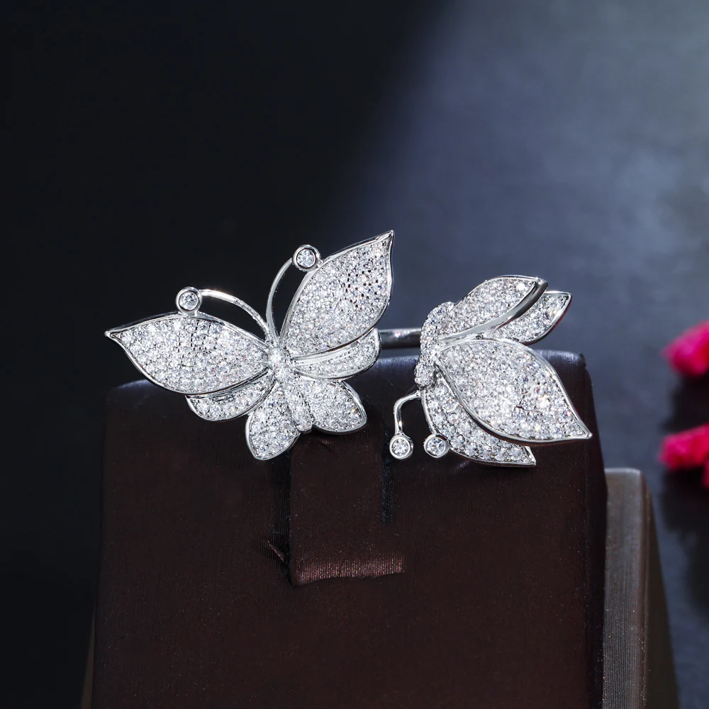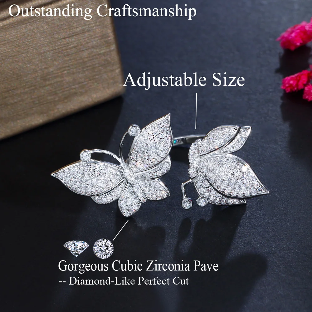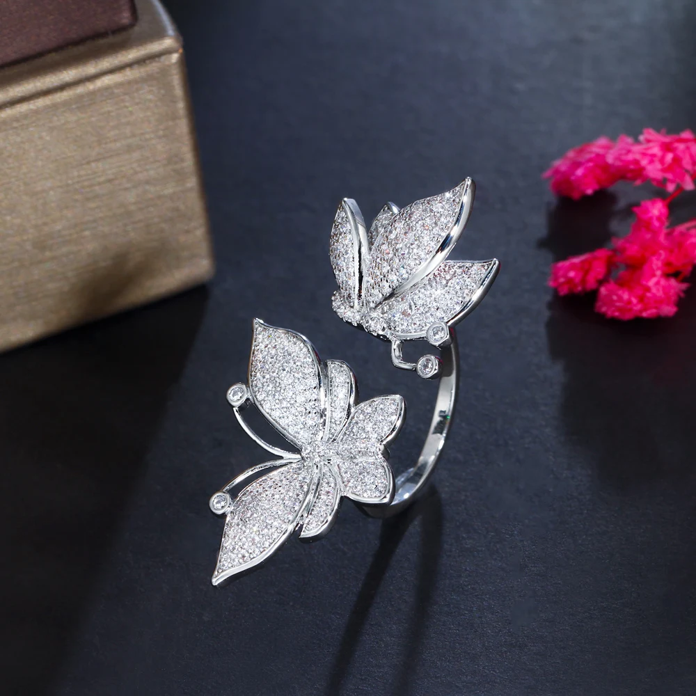 Cwwzans مايكرو البطانة زركون الفضة مطلي المفتوحة الكفة قابل للتعديل فراشة خواتم للنساء المشاركة اكسسوارات R221
