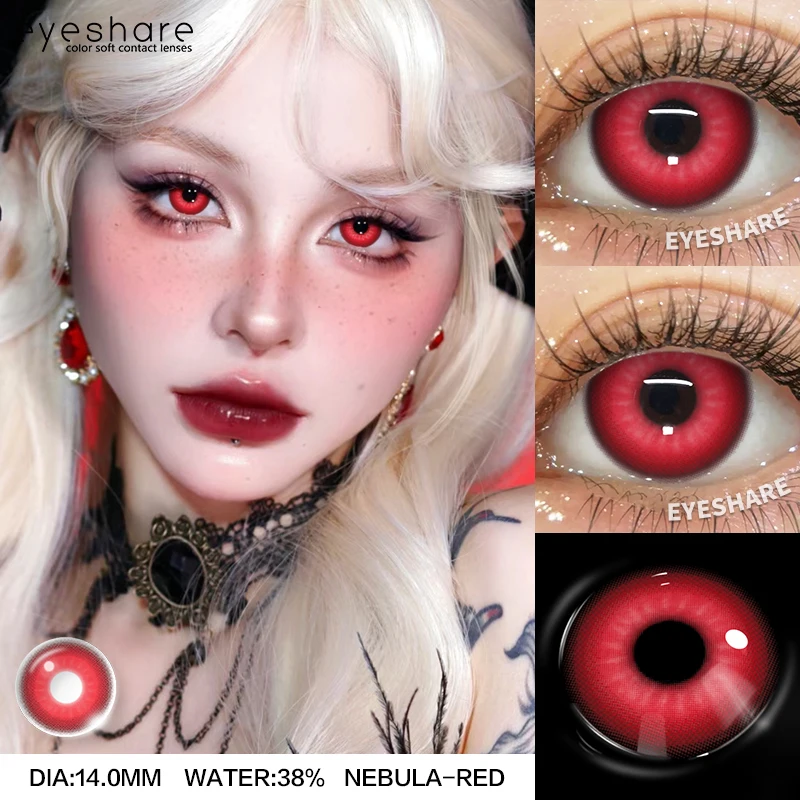 اييشير 1 زوج أنيمي تأثيري عدسات لاصقة ملونة للعيون عدسات العين الحمراء عدسات الهالوين الأرجواني ماكياج الجمال الوردي العدسات