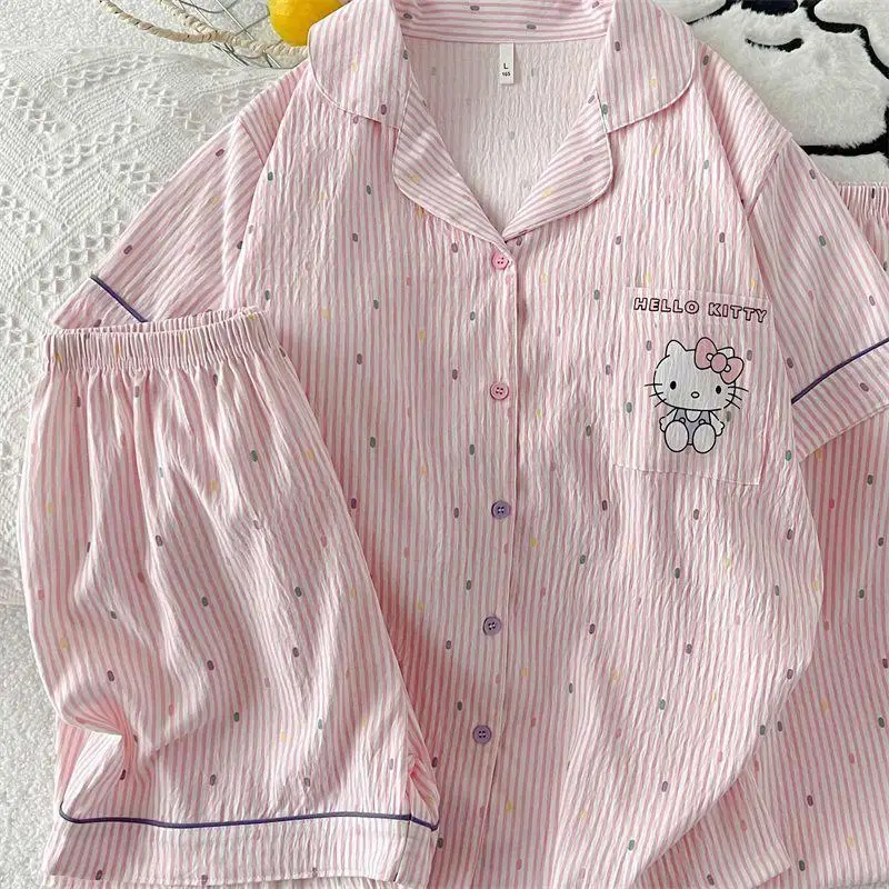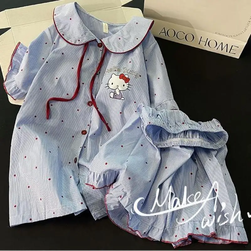 كن أول من يقيم “Sanrios مرحبا كيتي منامة مجموعة ملابس المنزل الصيف الكرتون 2 قطعة مجموعة مريحة Kawaii Y2K فضفاضة القطن الخالص قصيرة الأكمام” إلغاء الرد